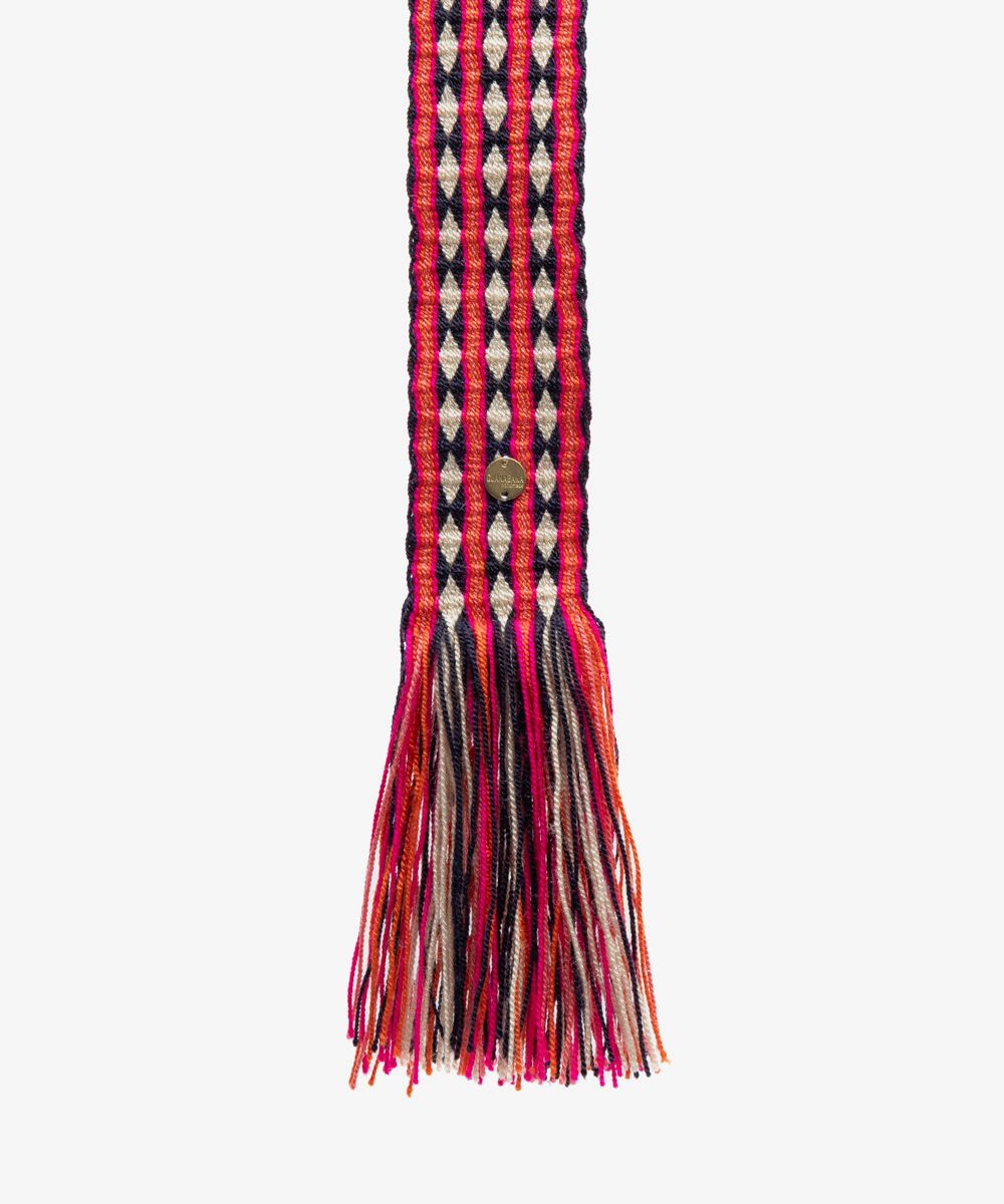 Enhance your style and adorn your waist with our exquisite collection of belts, exclusively imagined in Madrid. These belts are not just accessories; they are timeless pieces that seamlessly blend contemporary trends with ethnic and boho-inspired patterns, transforming any outfit into a work of art. With endless possibilities, our belts serve as more than just a fashion statement. They become an extension of your personality, allowing you to create a sartorial symphony that resonates with your unique style. Adorned with our distinctive medallion, proudly showcasing our guiding motto “Be Positive!” – to remind you to approach life with optimism and confidence. Each belt is meticulously hand-woven by talented artisans in Colombia, employing traditional techniques and a hand loom. Guanabana is proud to empower skilled craftswomen in Colombia, and our belts are a testimony of their talent. Our advice: Pair our belts with confidence, knowing that they are the perfect complement to our espadrilles, hats and bags, weaving together a harmonious narrative of style and sophistication.