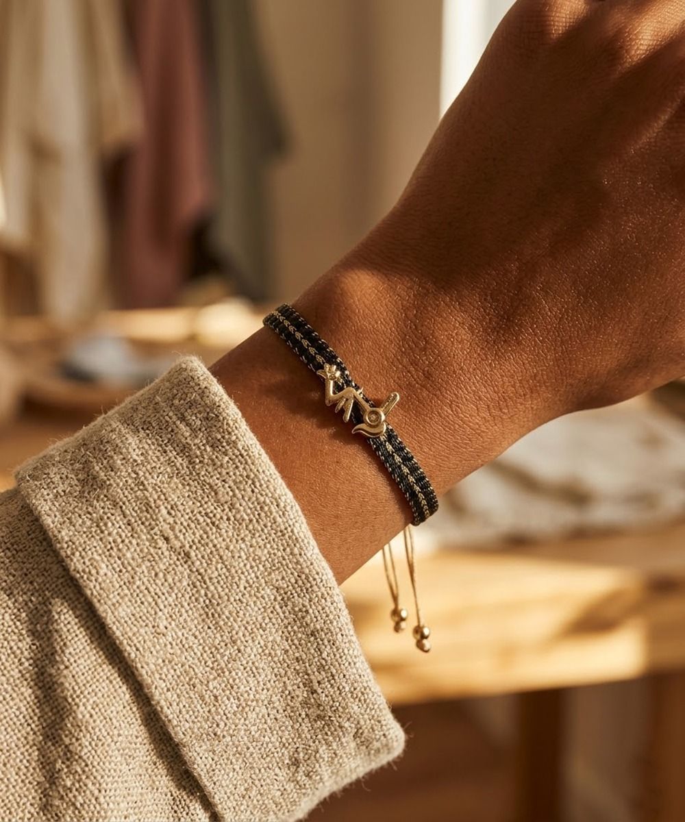 This product is composed by bracelet + charm in 925 silver and plated in 24 karat gold. To preserve its brightness, we recommend you to avoid wearing it during activities such as: - Sport, water activities (swimming pool, sea...) or manual activities (gardening, cleaning, DIY...). - Wear it in the shower or bath. We recommend you to avoid exposing your jewelry to: - Corrosive products or chemicals present in cleaning products or cosmetics (cleaners, perfumes, creams...). To avoid damaging your charm, it is essential not to try to adjust it or modify its shape. The patina may fade over time, it is a normal result of natural wear and will depend on the care you give to your piece. You can clean your charm by rubbing it with a soft cloth.