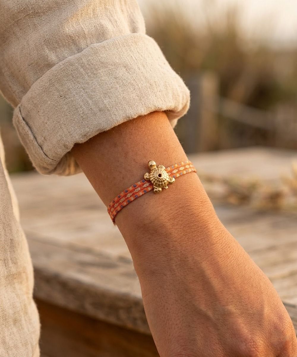 This product is composed by bracelet + charm in 925 silver and plated in 24 karat gold. To preserve its brightness, we recommend you to avoid wearing it during activities such as: - Sport, water activities (swimming pool, sea...) or manual activities (gardening, cleaning, DIY...). - Wear it in the shower or bath. We recommend you to avoid exposing your jewelry to: - Corrosive products or chemicals present in cleaning products or cosmetics (cleaners, perfumes, creams...). To avoid damaging your charm, it is essential not to try to adjust it or modify its shape. The patina may fade over time, it is a normal result of natural wear and will depend on the care you give to your piece. You can clean your charm by rubbing it with a soft cloth.