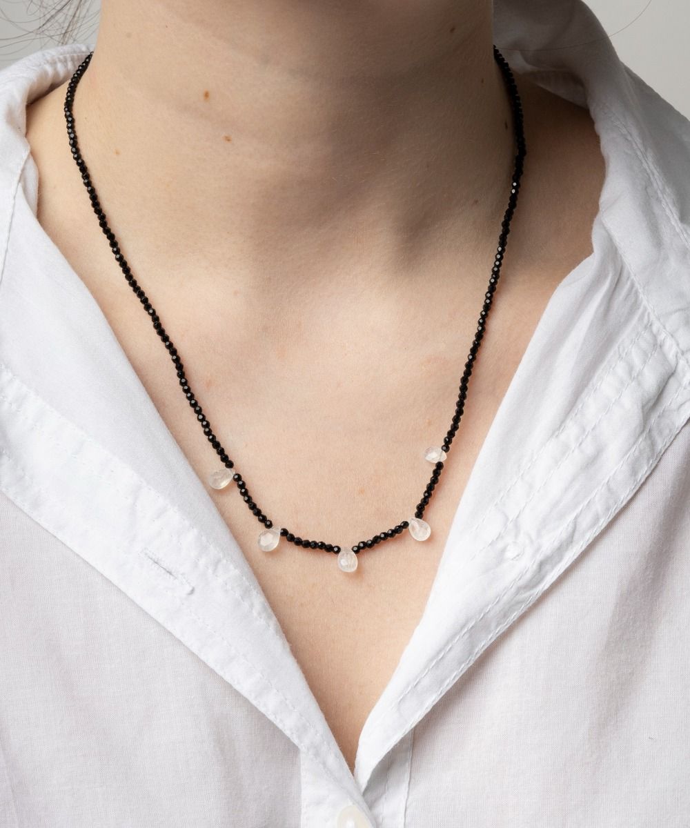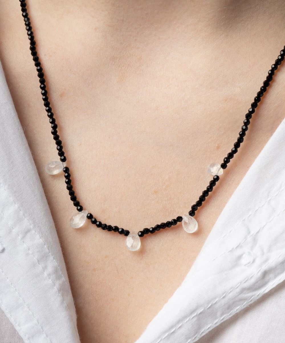 Delicate and feminine, a complement with an ethnic touch that will finish off any look, both in summer and winter. This exclusive Guanábana design has 5 drops of semi precious stones, giving a modern and different touch to the necklace. Our tip: you can combine necklaces of different lengths to create your own outfit. Our tip: you can combine necklaces of different lengths to create your own outfit.