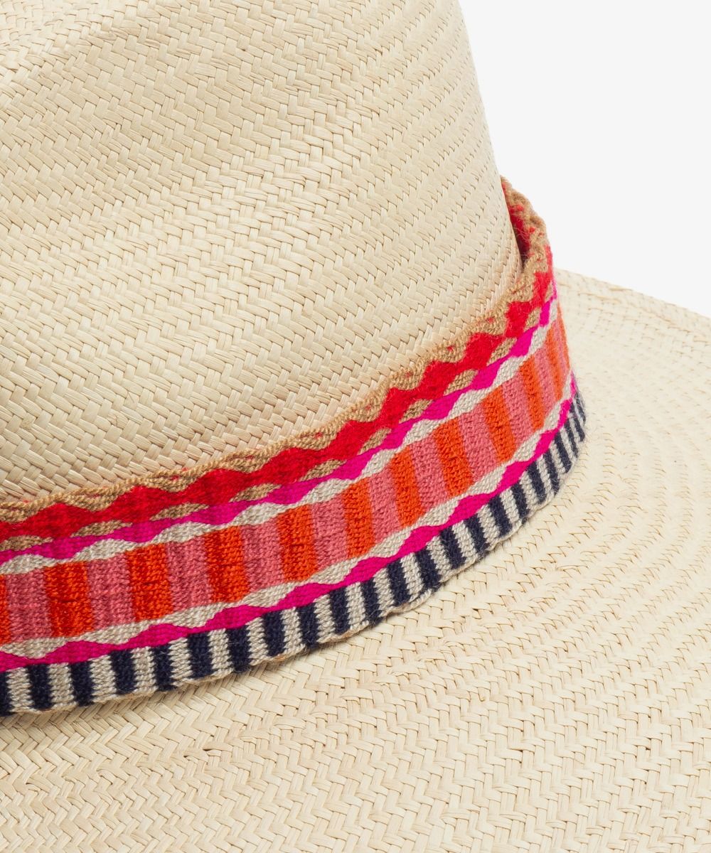 Picture yourself lounging on a white sand beach, sipping on a refreshing drink and soaking up the sun... now complete this idyllic scene with one of our handcrafted iraca hats, the perfect accessory to elevate your summer style. Iraca, also known as toquilla straw, is a natural and sustainable fiber made from the Iraca palm tree. Colombian artisans carefully select the finest strips of iraca, carefully dye them, and weave them together to create this stunning hat. The result is a beautiful and timeless accessory, perfect for sunny days at the beach or exploring exotic destinations. Each hat features our distinctive and colorful bands, designed to complement the woven patterns, with a fusion of boho-chic and contemporary trends that make our hats stand out from the crowd. At Guanabana, we believe that style and practicality should go hand in hand. Our hats offer maximum sun protection, shielding you from harmful rays while keeping you cool and comfortable under the sun. Our advice: For the perfect summer outfit, pair our iraca hats with our Wayuu bags and a colorful kaftan from our collection. Whether you're lounging on the beach or strolling through the city, our hats will complete your look with a touch of elegance and sophistication.