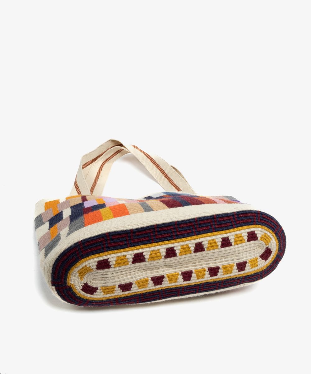 Exclusively designed by GUANABANA, our shopping bag represents the first giant leap to try new options for Wayuu artisan's original mochila design. The result is a surprisingly fashionable and functional bag, and its Handle length is perfect for carrying them on your shoulders or hands. This bag has our distinctive bronze tag with GUANABANA'S leitmotiv: BE POSITIVE.