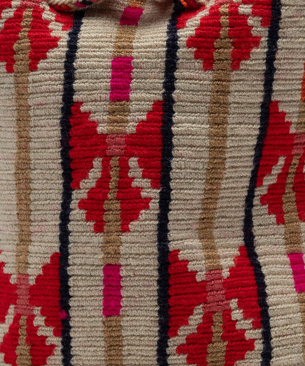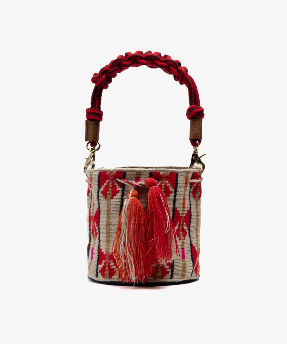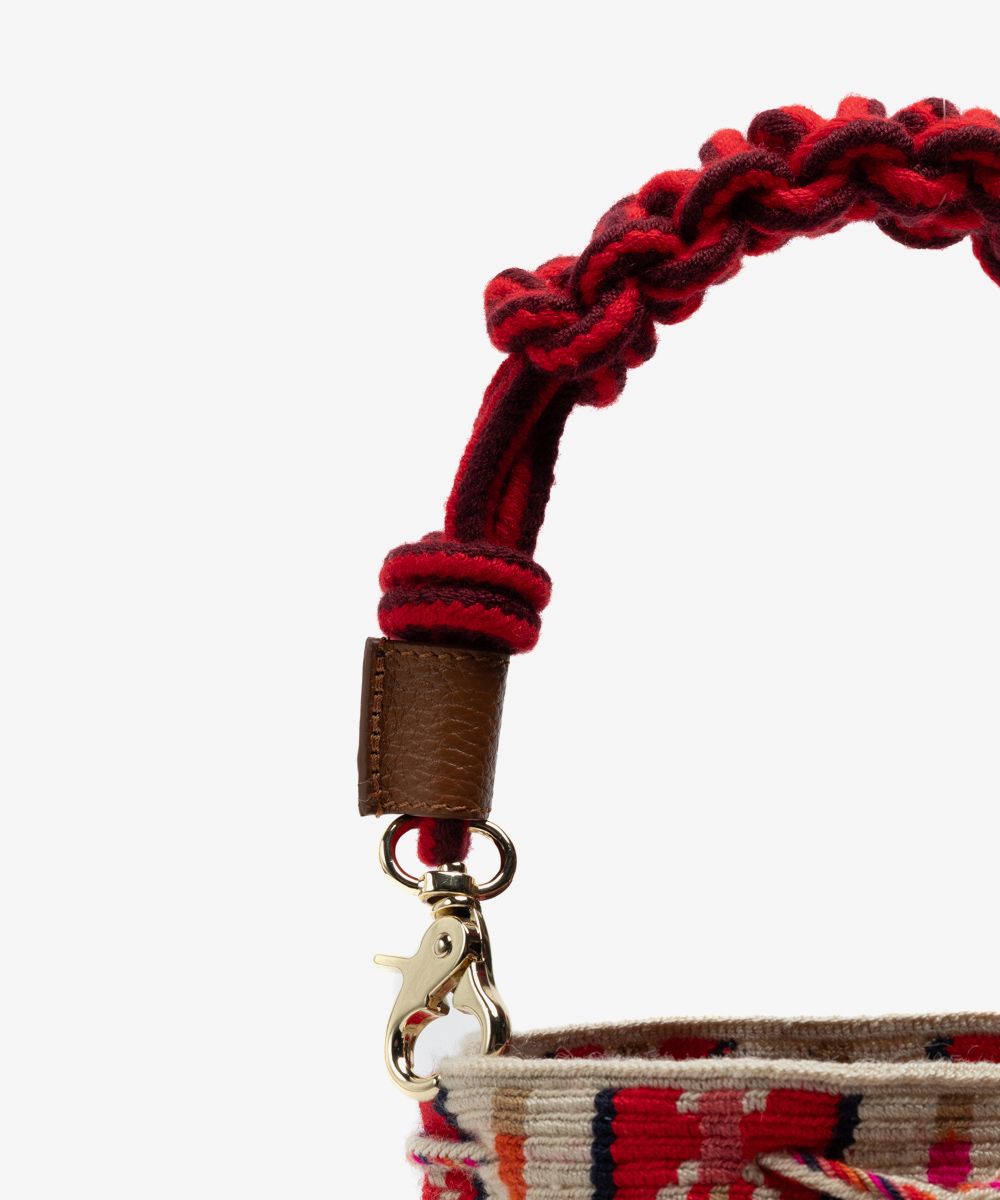 Crossbody Bag M with short macrame handle - CIRCINUS - BEIGE & RED