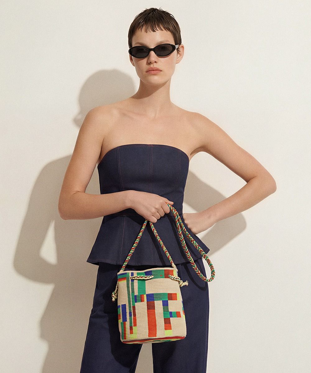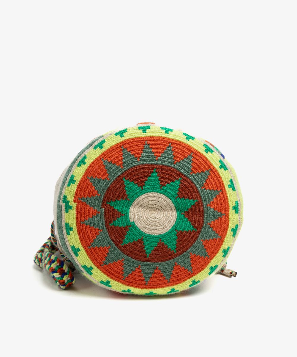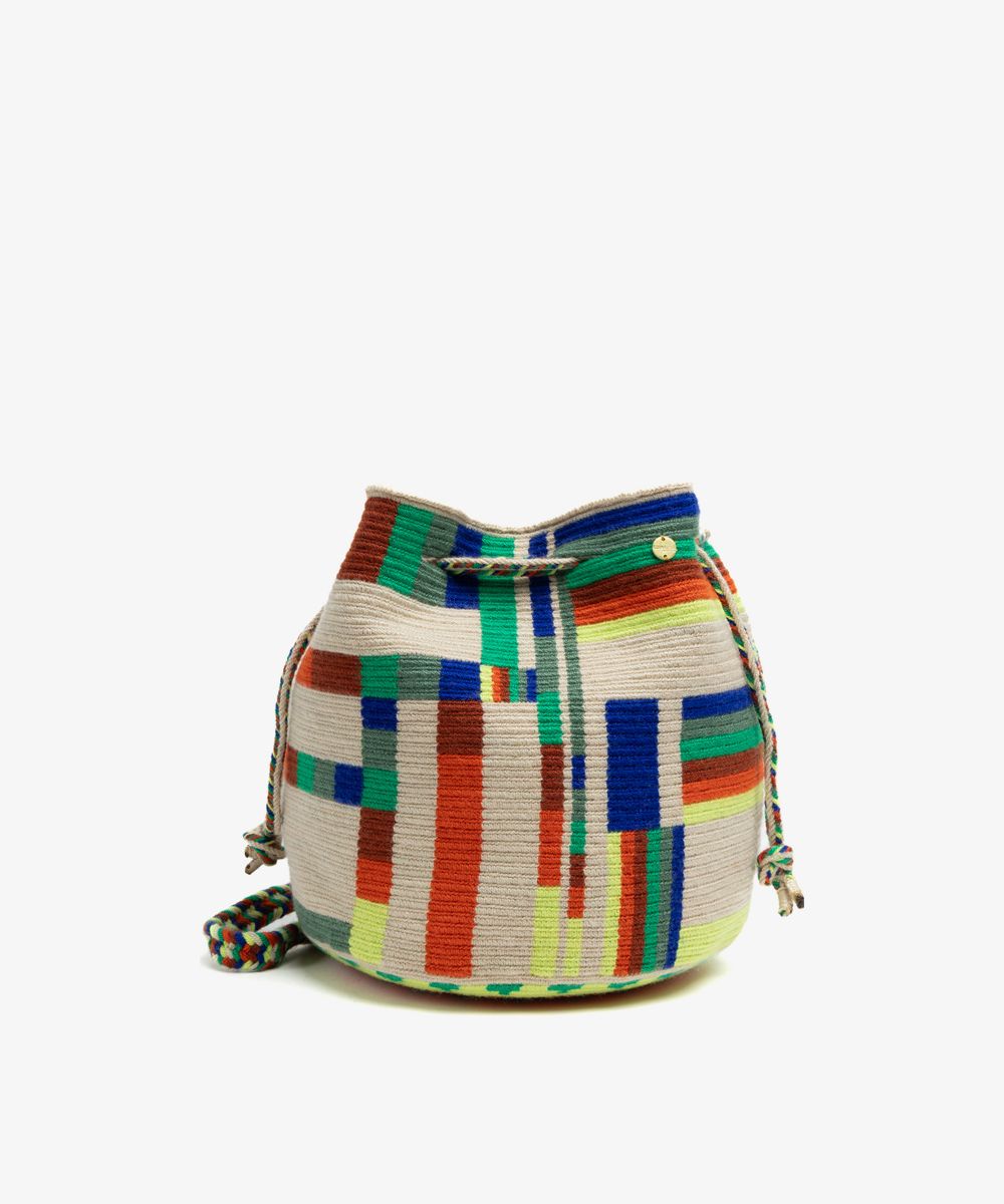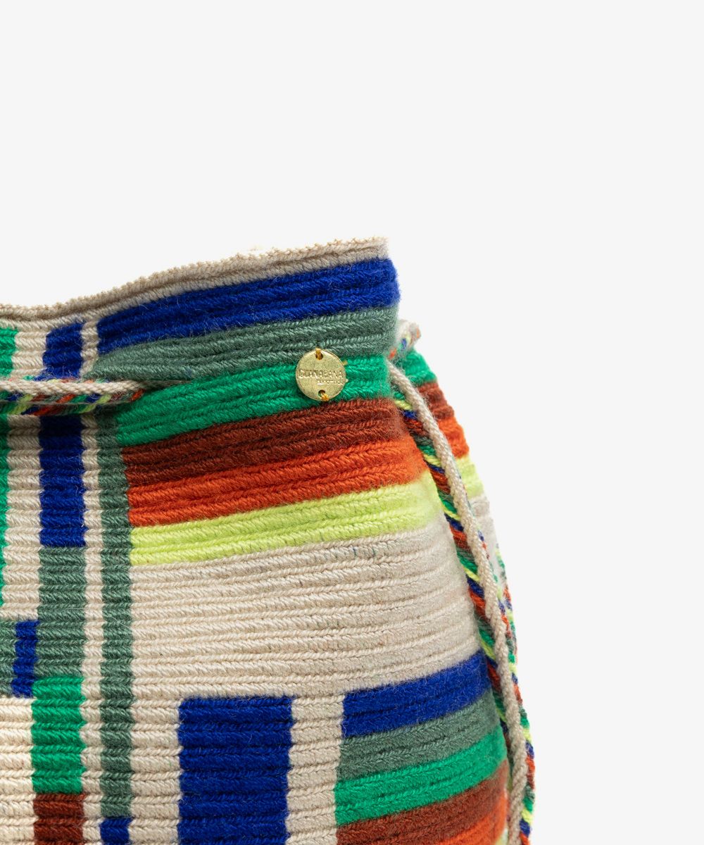 Mitra is the Hindu god of friendship, and this is one of GUANABANA'S best pals because friendship and mutual trust with Wayuu artisans in Colombia bring this bag to life. This version of the classic Wayuu bag closes with a practical cord you can knot or enlarge, suiting your needs. Take stock of its colors and patterns. MITRA carries our distinctive bronze tag with GUANABANA'S leitmotiv: BE POSITIVE.