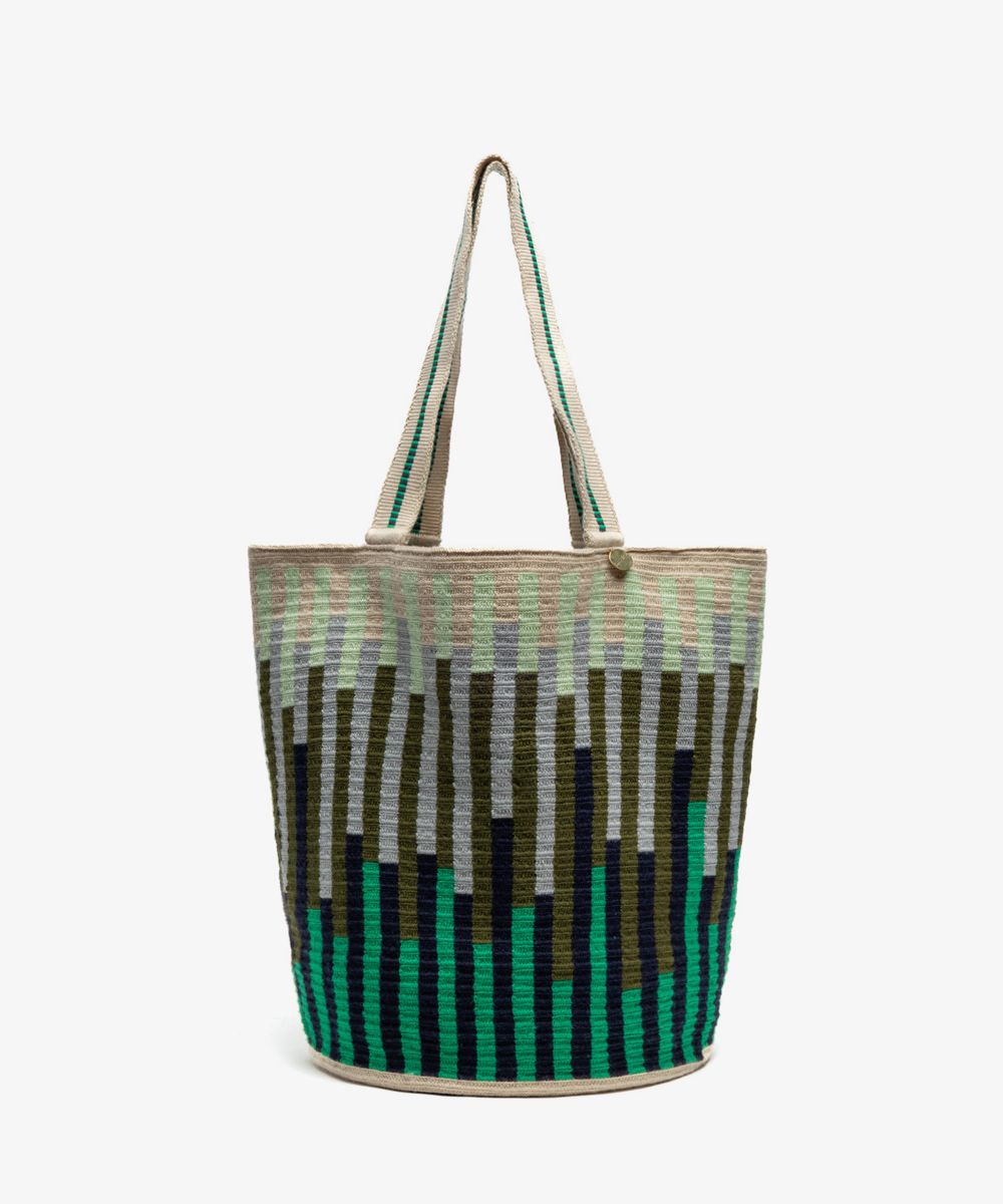 GUANABANA reinvents the classic tote bag, adding a boho-chic touch with geometrical and vibrant patterns. Designed in Madrid and hand-crocheted by Wayuu artisans in Colombia, our Tote Bag has a looser stitch and a long, comfortable Handle that is perfect for any activity. Enjoy this all-around, all-purpose, uncomplicated unisex bag. All our bags carry our distinctive bronze tag with GUANABANA'S leitmotiv: BE POSITIVE.