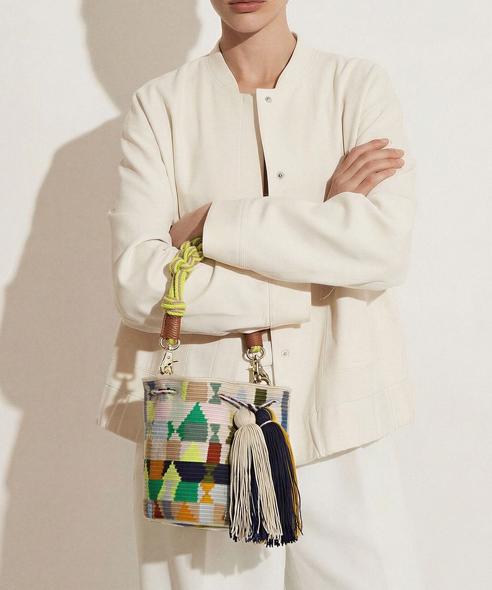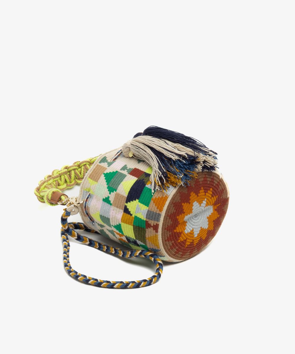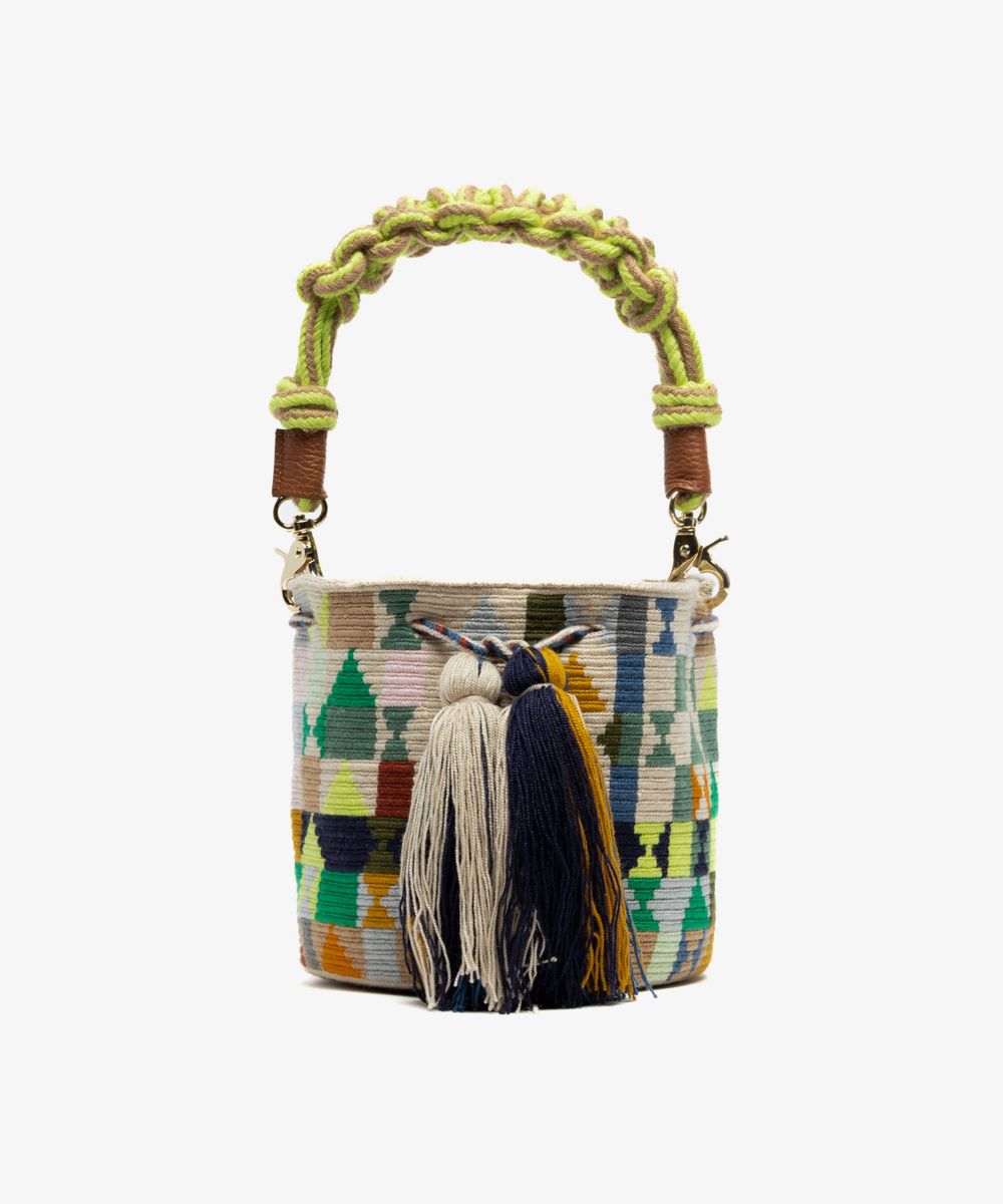 BOLSO CRUZADO M CON ASA DE MACRAMÉ - HARE - JADE Y MULTICOLOR