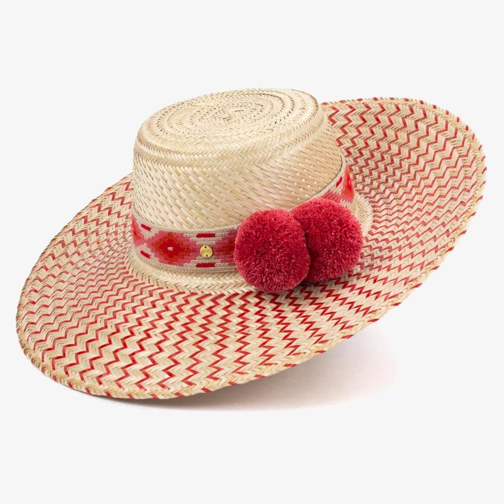 Estos sombreros están hechos a mano y elaborados por comunidades Wayuus, ubicados al noreste de Colombia. La materia prima es una especie de palma conocida como la Mawisa o Isi y crece en las estribaciones de la Serranía de la Makuira, donde se encuentran estas comunidades. Los artesanos utilizan la técnica de tejido en sargas o diagonal en cada una de las partes del individual. Para la limpieza se aconseja utilizar un paño húmedo. No es lavable.