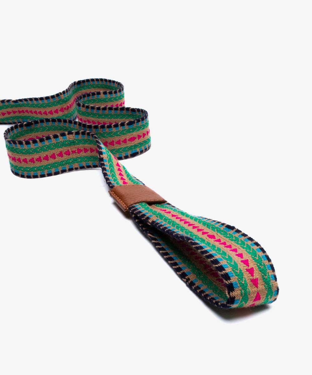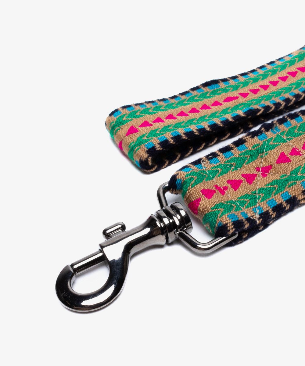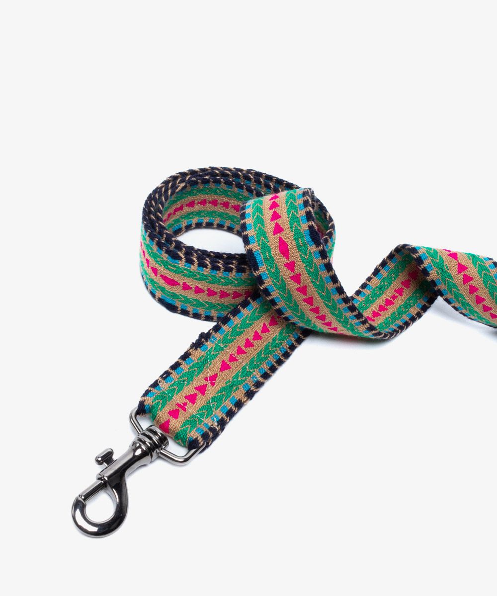 Guanábana provides a curated selection of handmade leashes for pets. Each leash is meticulously crafted using a traditional hand loom technique for the strap, with all finishing details, including the handle and Zamac carabiner, completed in our atelier. Additionally, they are machine washable.
