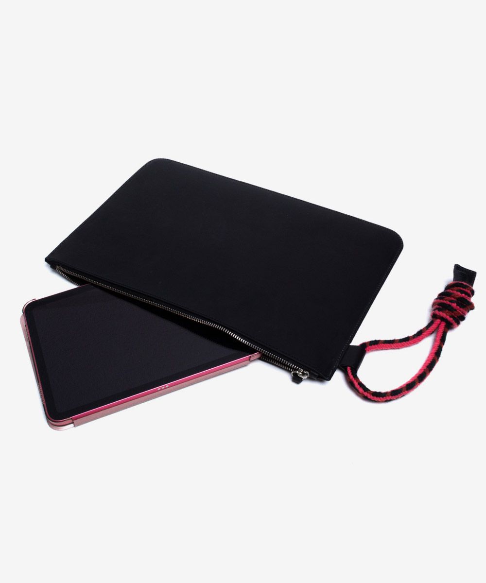 Protect your computer with Guanabana's stylish and functional computer case. Meticulously crafted from the finest Spanish leather and intricate Wayuu lacing, this holster is a stunning fusion of two fascinating cultures. At the same time you add a touch of color and style to your outfit. itis measurements are 39x27cm