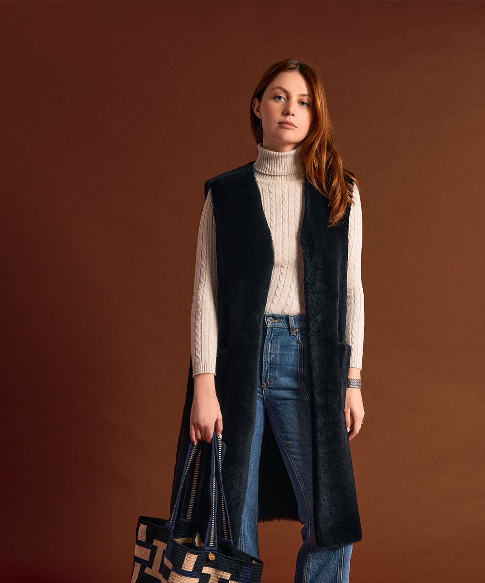 Details: Material: 100% Spanish lambskin Technique: Handcrafted tanning and traditional tailoring Finish: Natural vegetable dyes Size: One size Approximate measurements: Length 120cm | Chest 120cm Origin: Made in Spain Features: Lightweight, reversible, soft and supple texture Care: Avoid contact with water or direct sources of heat Do not wash or iron Clean with a dry cloth or take to a professional leather specialist Store in a cool, ventilated place away from direct sunlight
