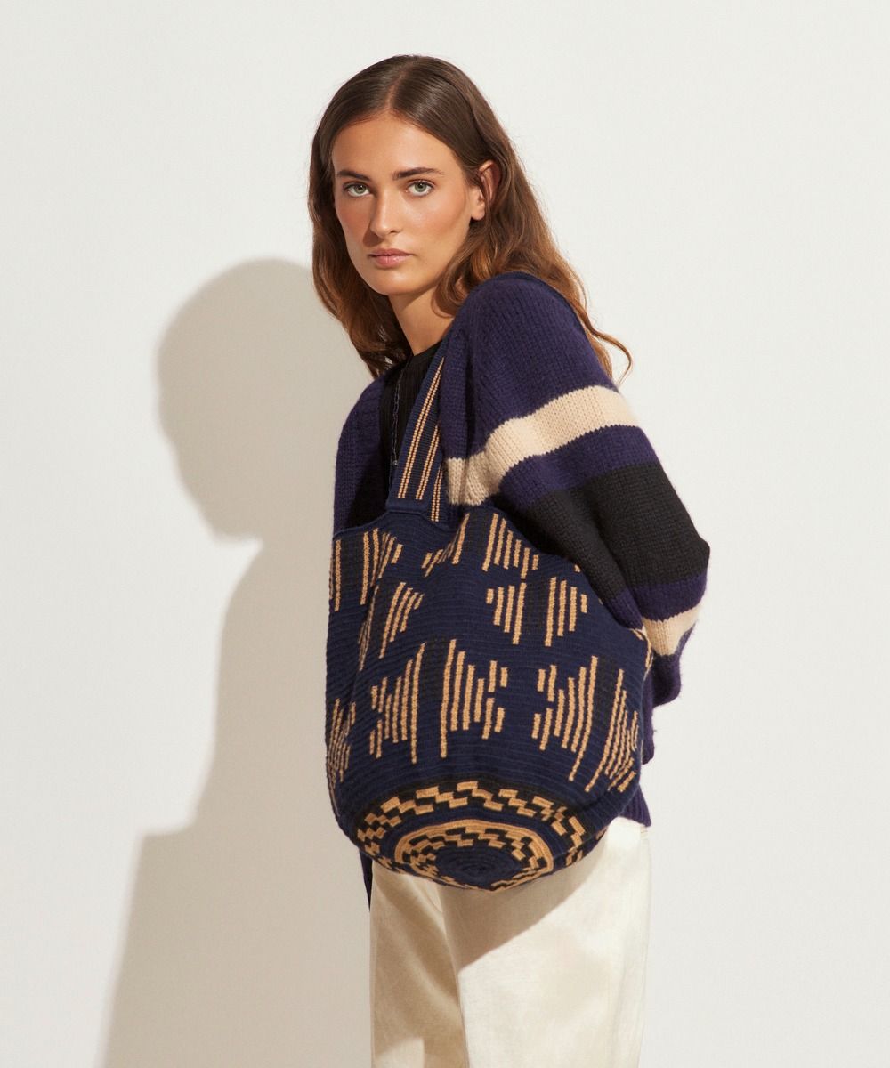GUANABANA'S design team brings this exclusive day-to-day bag in Madrid as a smaller version of our traditional hand-crocheted Colombian Wayuu mochila. Its fashionable patterns, colors, geometrical shapes, and log-braided Handle make this bag a functional product you can wear to match your adventures. Check its bottom and indulge yourself with different decorations in each bag. The bag closes with colorful pompoms and our distinctive bronze tag with GUANABANA'S leitmotiv: BE POSITIVE.