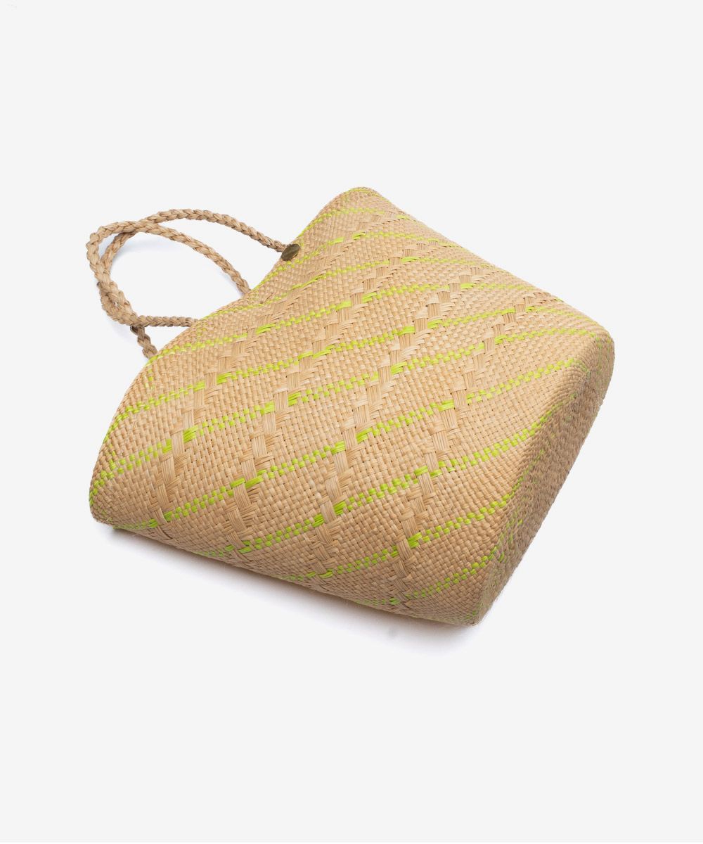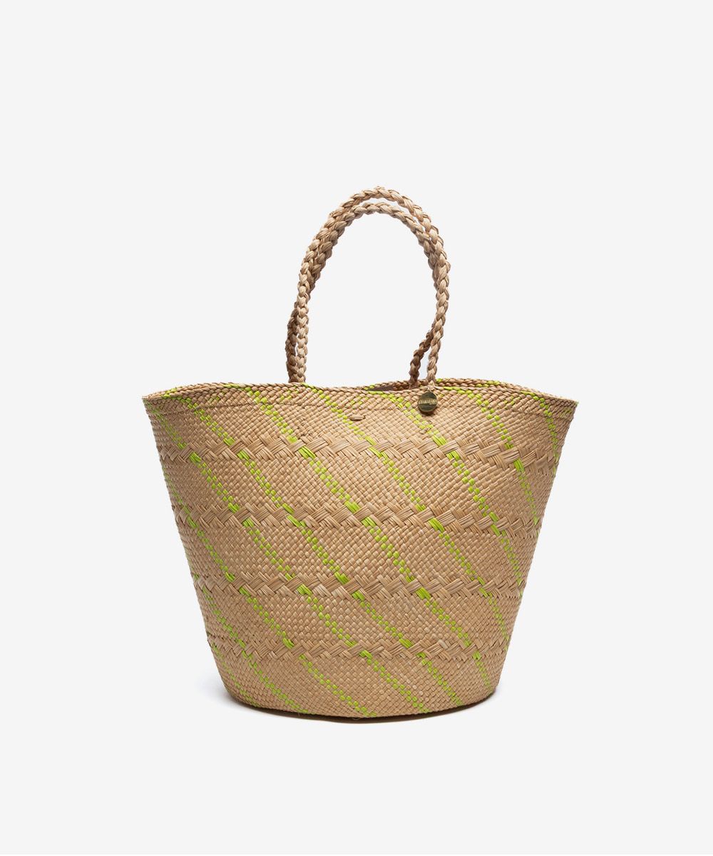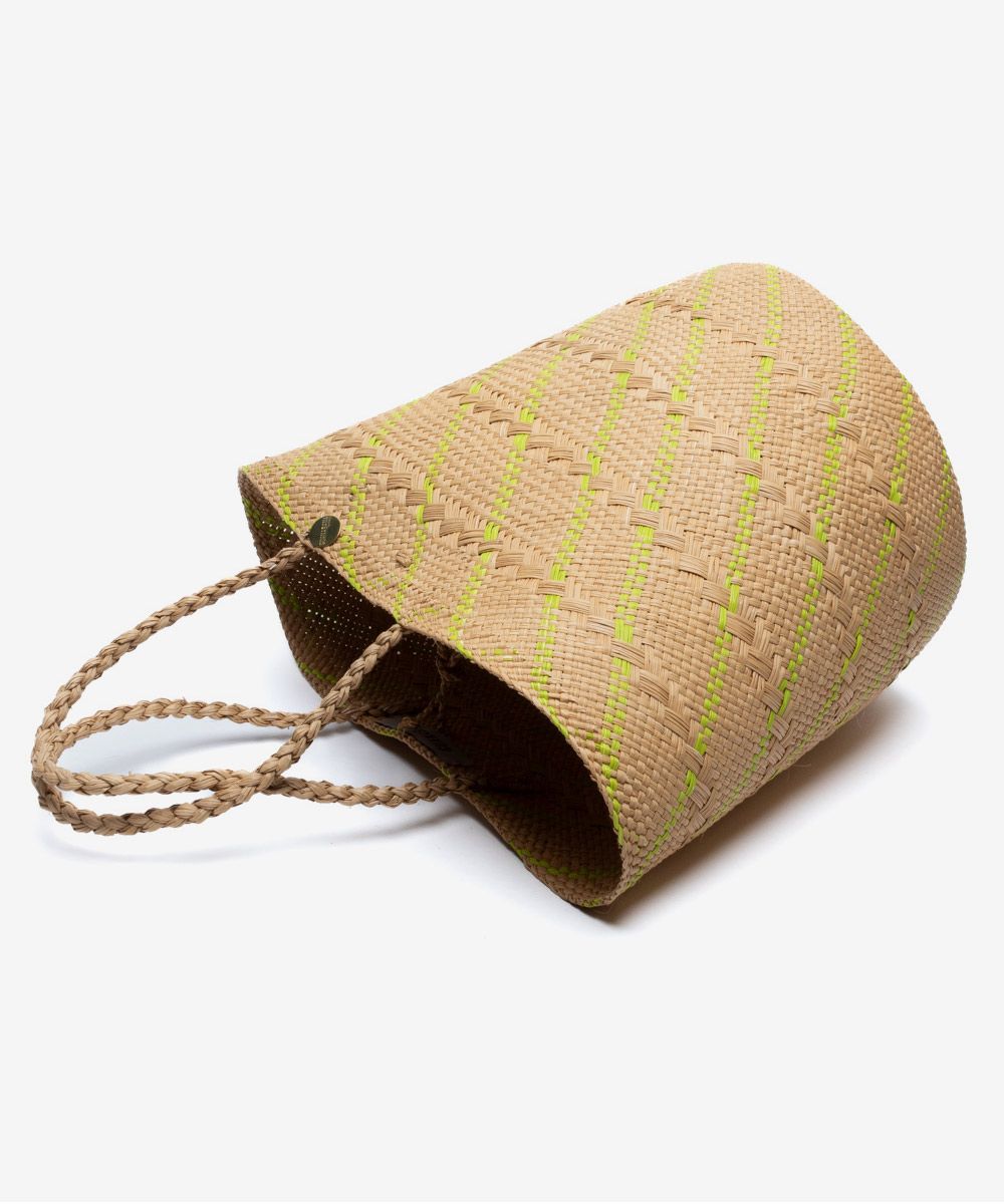 Materials: • 100% iraca straw • Brass medallion Dimensions: • Height: 28 cm (11 inches) • Handles length: 17 cm (7 inches) • Opening diameter: 36 cm (14 inches) Each bag is unique and entirely handmade, so there may be slight variations in shape or size. Not machine washable, wash with a damp cloth.