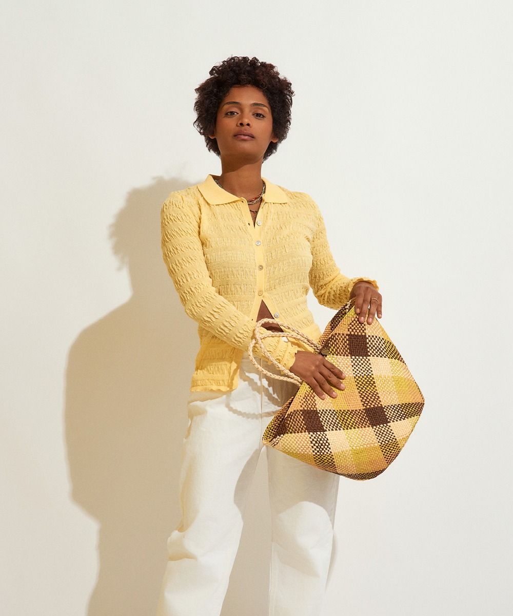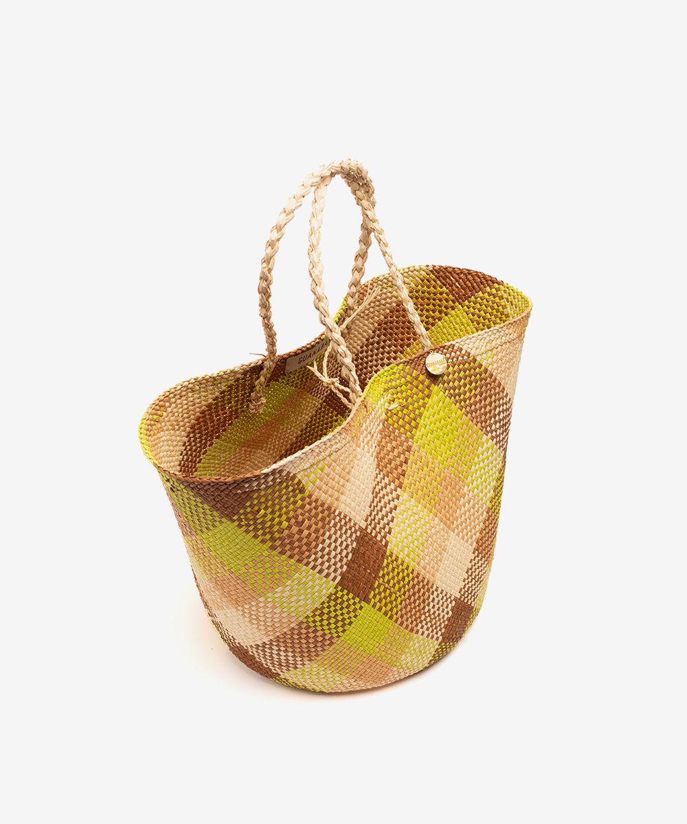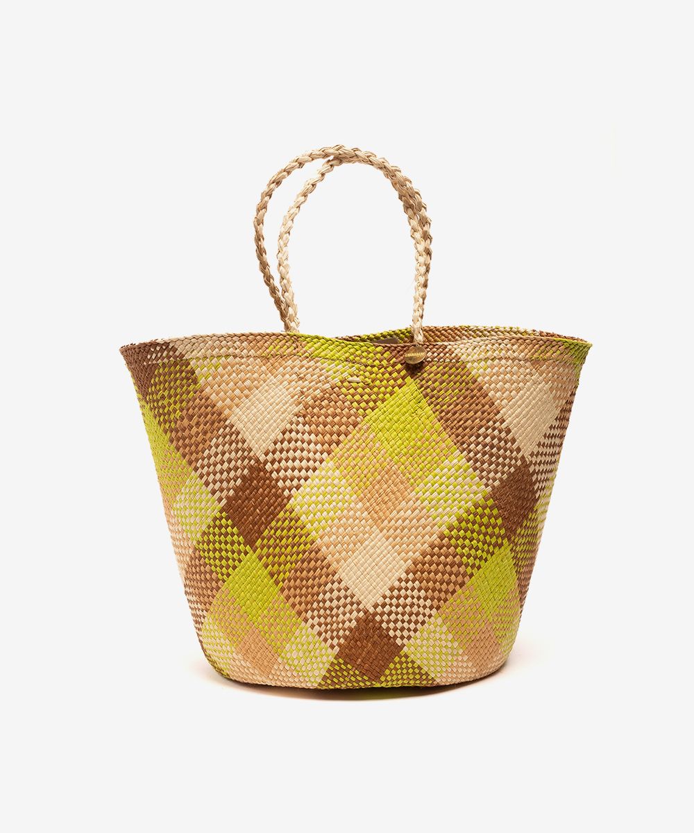 Materials: • 100% iraca straw • Brass medallion Dimensions: • Height: 28 cm (11 inches) • Handles length: 17 cm (7 inches) Opening diameter: 36 cm (14 inches) Each bag is unique and entirely handmade, so there may be slight variations in shape or size. Not machine washable, wash with a damp cloth.