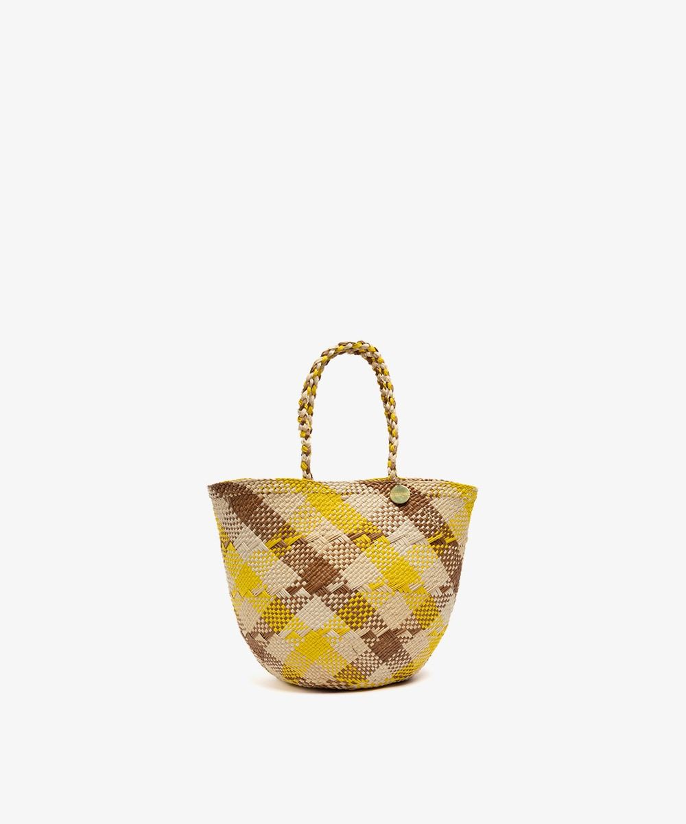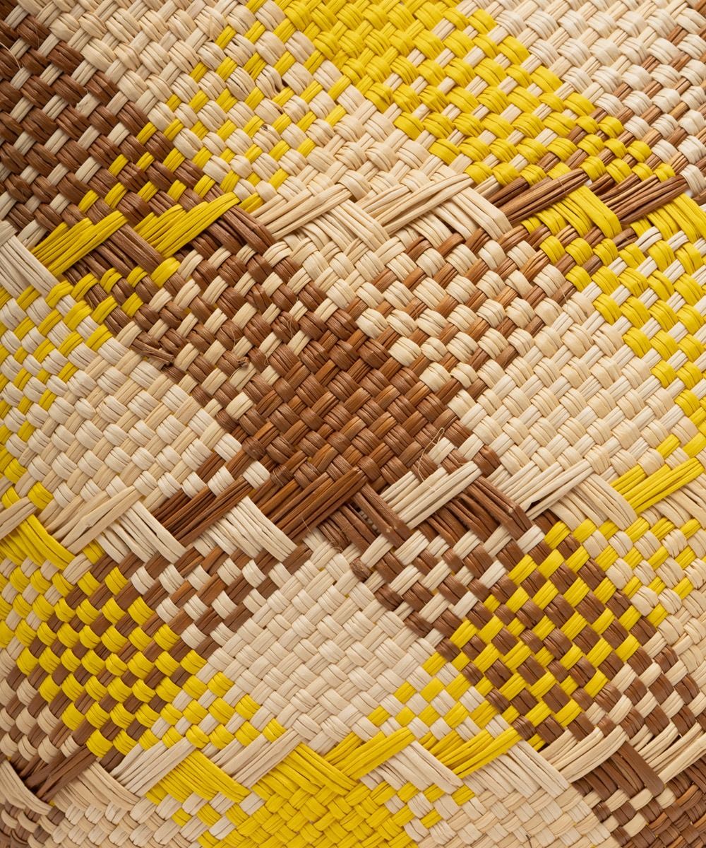 Materials: • 100% iraca straw • Brass medallion Dimensions: • Height: 33 cm (12.9 inches) • Handles length: 15 cm (5.9 inches) • Opening diameter: 107 cm (42.1 inches) Each bag is unique and entirely handmade, so there may be slight variations in shape or size. Ma-chine washable in cold water. Not machine washable, wash with a damp cloth.