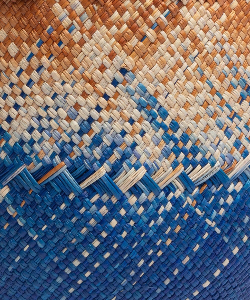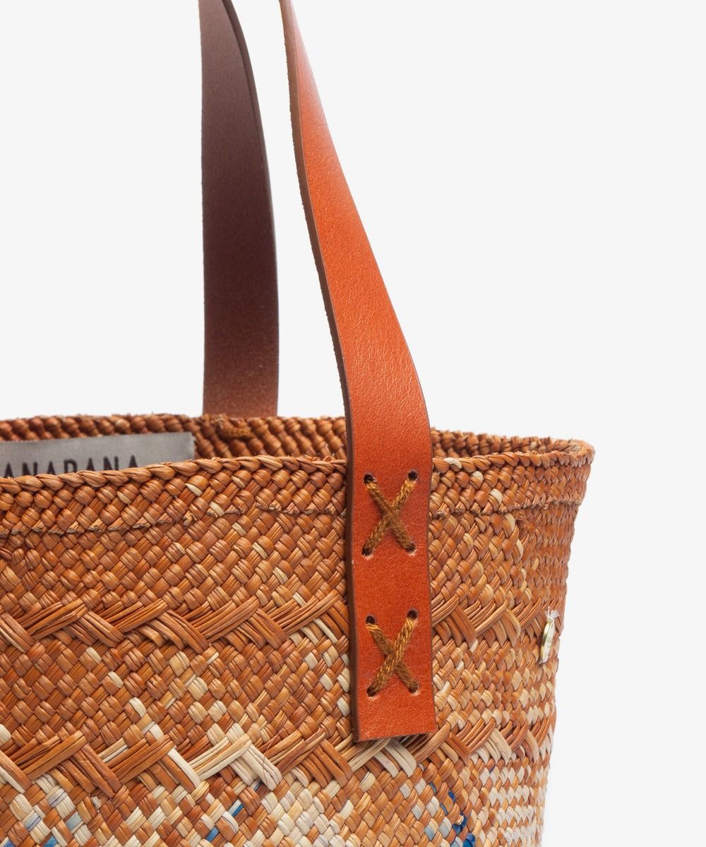Materials: • 100% iraca straw • Brass medallion Dimensions: • Height: 33 cm (12.9 inches) • Handles length: 15 cm (5.9 inches) • Opening diameter: 107 cm (42.1 inches) Each bag is unique and entirely handmade, so there may be slight variations in shape or size. Ma-chine washable in cold water. Not machine washable, wash with a damp cloth.
