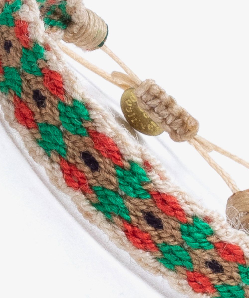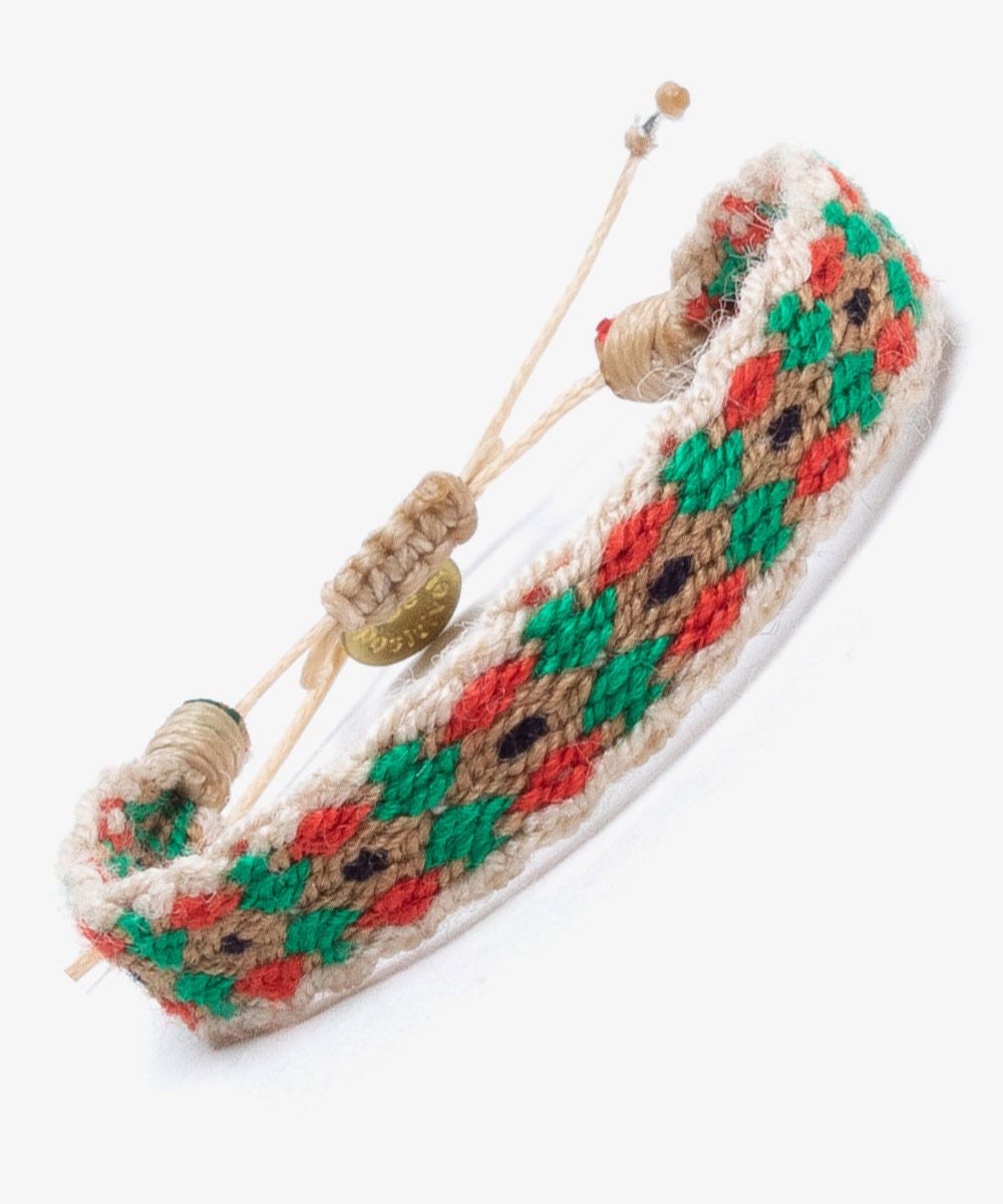 Add a vibrant touch of colour to your look with the CAPTAIN bracelet, an original creation by Guanábana. The colourful geometric patterns are designed in Madrid and our bracelets are entirely hand-woven by Colombian artisans. The opening of the bracelet adjusts to your wrist and is adorned with a medallion on which is inscribed our mantra: Be positive!