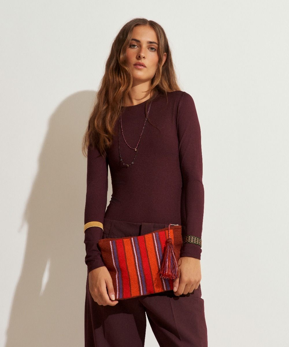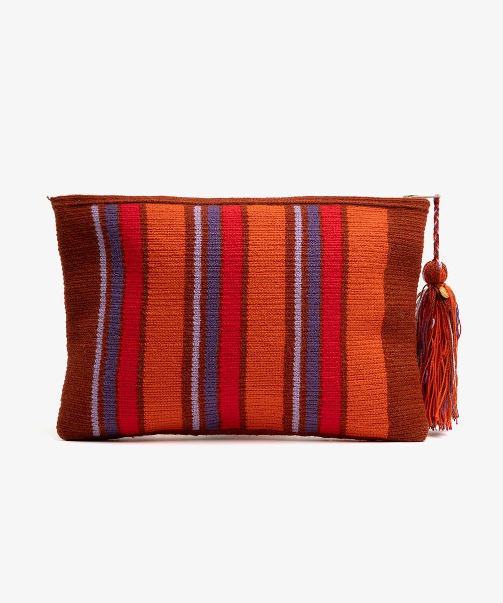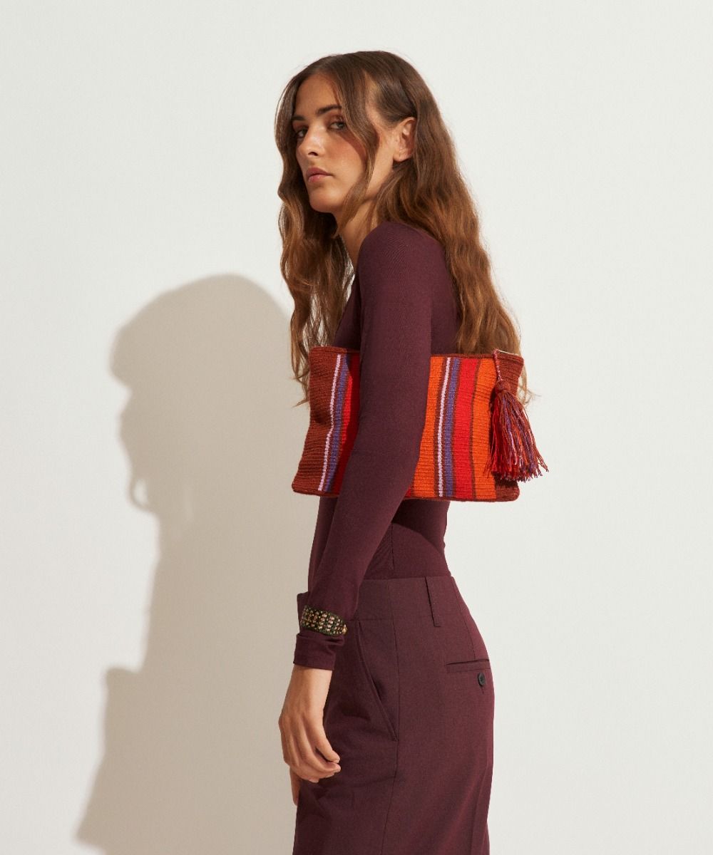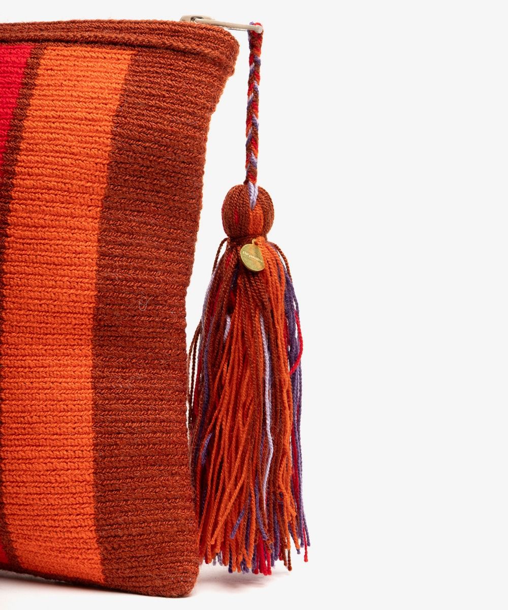 GUANABANA has refashioned the formal clutch into your wardrobe's colorful and joyful must-have bag. It is GUANABANA's more challenging model since Wayuu artisans had never tried crocheting a square. Mind-changing and mind-blowing, our clutches grant a new dimension for artisans who dared to change and create this unique piece. The bag closes with colorful pompoms and our distinctive bronze tag with GUANABANA'S leitmotiv: BE POSITIVE. LIMITED EDITION