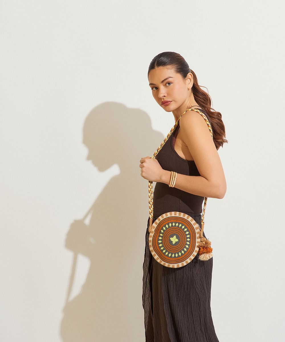 GUANABANA highlights a characteristic feature of the Wayuu bags: the base. The result of this bottom-up approach is a gorgeous round cross-body bag that represents a giant leap in the development of new models and perspectives for the Wayuu community in Colombia. Enjoy this piece of art for any occasion. This bag carries our distinctive bronze tag with GUANABANA'S leitmotiv: BE POSITIVE.
