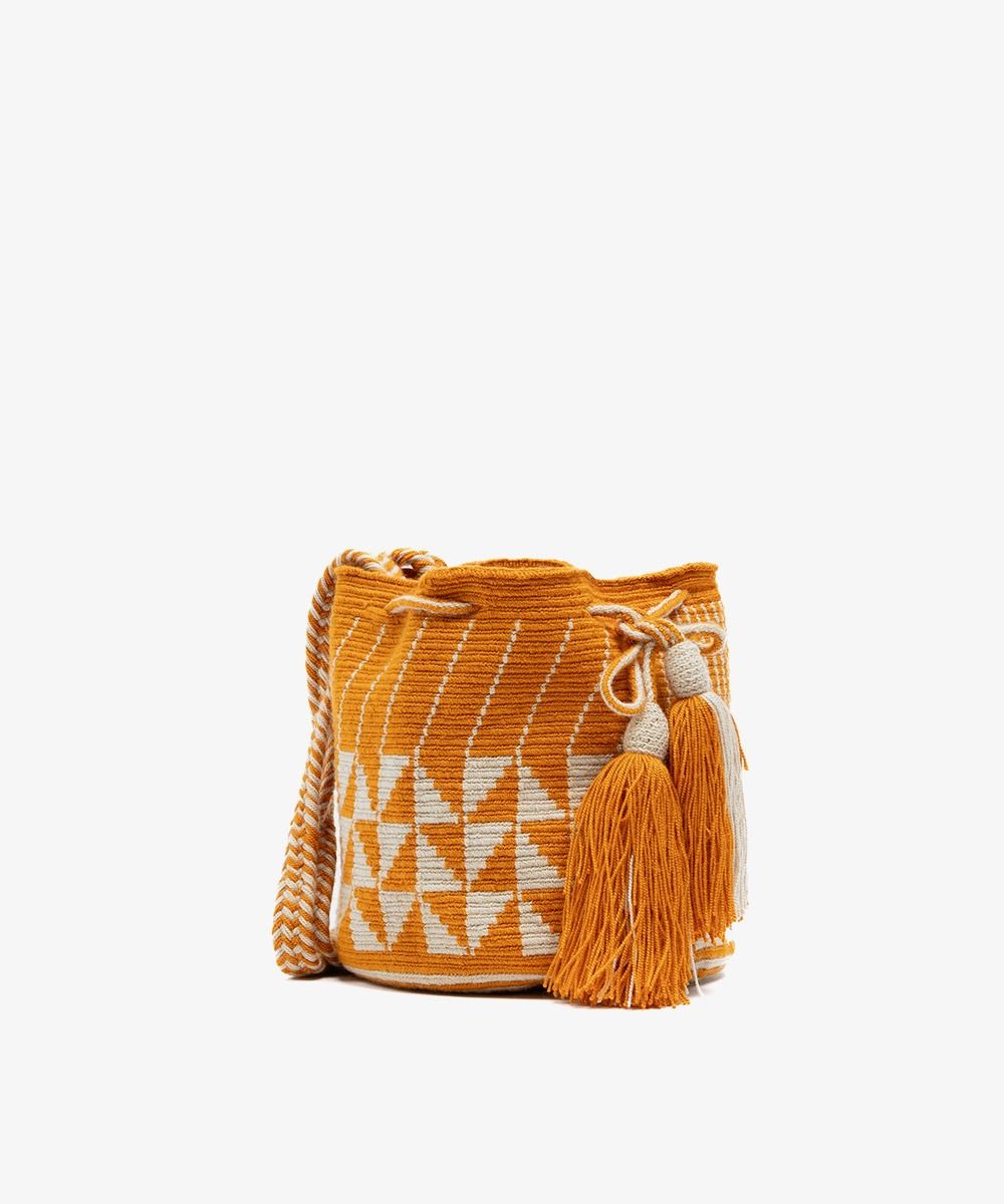 GUANABANA'S design team brings this exclusive day-to-day bag in Madrid as a smaller version of our traditional hand-crocheted Colombian Wayuu mochila. Its fashionable patterns, colors, geometrical shapes, and log-braided Handle make this bag a functional product you can wear to match your adventures. Check its bottom and indulge yourself with different decorations in each bag. The bag closes with colorful pompoms and our distinctive bronze tag with GUANABANA'S leitmotiv: BE POSITIVE.