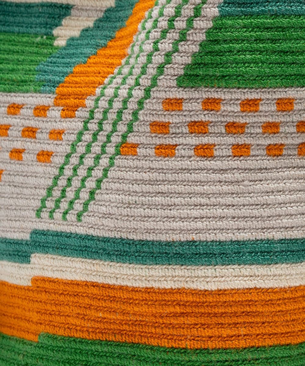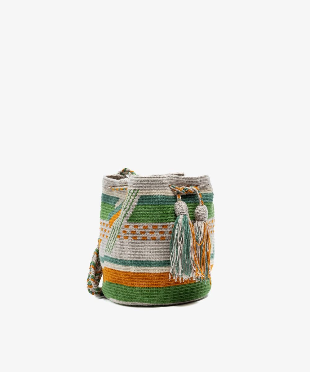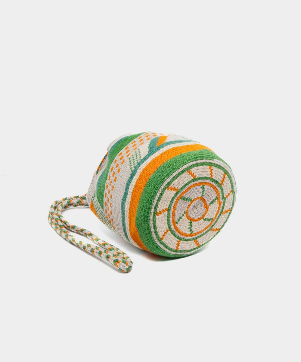 GUANABANA'S design team brings this exclusive day-to-day bag in Madrid as a smaller version of our traditional hand-crocheted Colombian Wayuu mochila. Its fashionable patterns, colors, geometrical shapes, and log-braided Handle make this bag a functional product you can wear to match your adventures. Check its bottom and indulge yourself with different decorations in each bag. The bag closes with colorful pompoms and our distinctive bronze tag with GUANABANA'S leitmotiv: BE POSITIVE.
