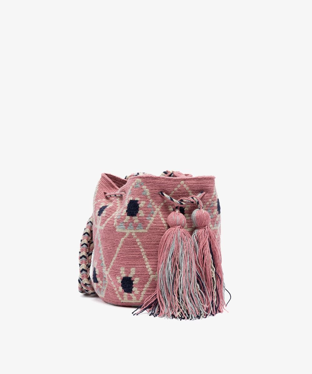 GUANABANA'S design team brings this exclusive day-to-day bag in Madrid as a smaller version of our traditional hand-crocheted Colombian Wayuu mochila. Its fashionable patterns, colors, geometrical shapes, and log-braided Handle make this bag a functional product you can wear to match your adventures. Check its bottom and indulge yourself with different decorations in each bag. The bag closes with colorful pompoms and our distinctive bronze tag with GUANABANA'S leitmotiv: BE POSITIVE.