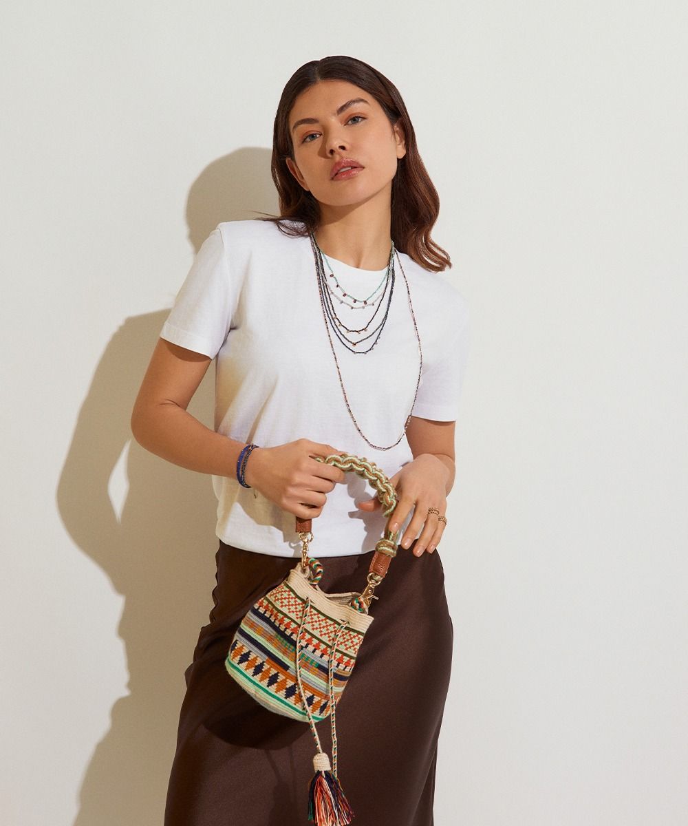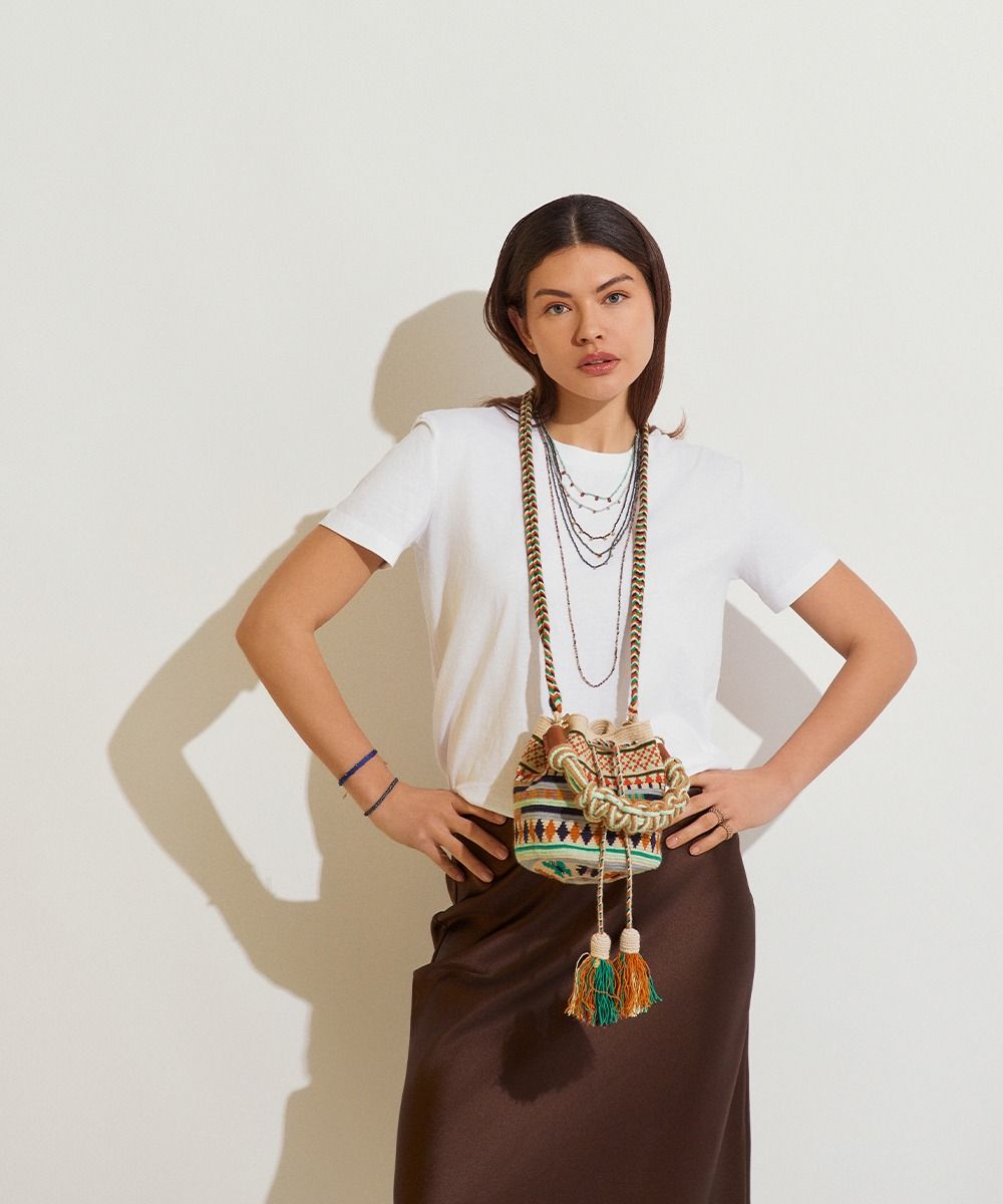 The Guanábana Handmade M Crossbody Bag with a short macramé handle is an artisanal gem that combines style and authenticity. This unique accessory is designed with great attention to detail and carefully crafted by skilled artisans. The bag is made from high-quality materials and features an intricate macramé pattern on its short handle. Macramé, an ancient decorative knotting technique, adds a bohemian and artistic touch to the design. Each knot has been meticulously created, reflecting the skill and passion of the artisan who crafted it. The medium size of the M Crossbody Bag makes it ideal for carrying your essentials in a comfortable and elegant manner. Its crossbody design allows you to wear it over the shoulder or across the body, providing you with freedom of movement while keeping your belongings secure and within reach. In addition to its aesthetic beauty, the Guanábana Handmade bag is a tribute to craftsmanship and fair trade. The brand takes pride in supporting local communities and promoting ethical and sustainable work practices. With the Guanábana Handmade M Crossbody Bag with a short macramé handle, you will carry with you a piece of history, tradition, and a love for art. Whether you wear it on your daily adventures or on special occasions, this bag will be the perfect complement to enhance your outfit and express your individuality. Enjoy the beauty and exclusivity of Guanábana Handmade and carry with you a masterpiece that tells a story of craftsmanship and passion.