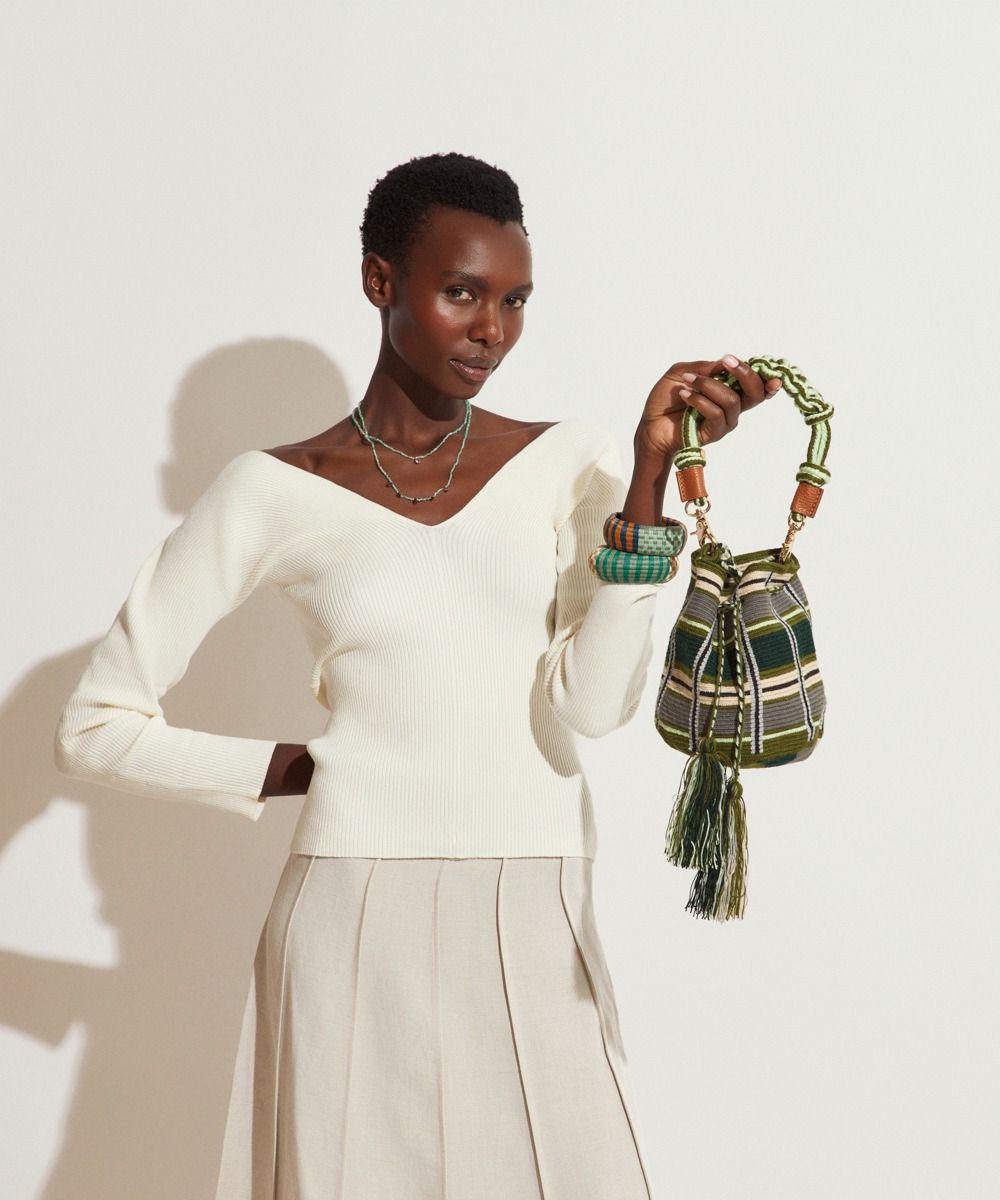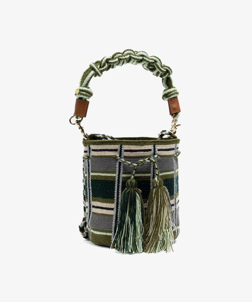 DESIGNED IN MADRID- 100% HANDCRAFTED BY WOMEN IN COLOMBIA, GUANABANA EMBRACES SMALL DIFFERENCES: SIZES OR DESIGNS MAY VARY FROM THE PICTURE. MACHINE WASH IN COLD WATER. Material: 100% acrylic Approximate dimensions: Height: 15 cm (5,9 inches) Diameter: 15 cm (5,9 inches) Long Handle: 115 cm (45,27 inches) Macramé handle: 45cm (17,71 inches)
