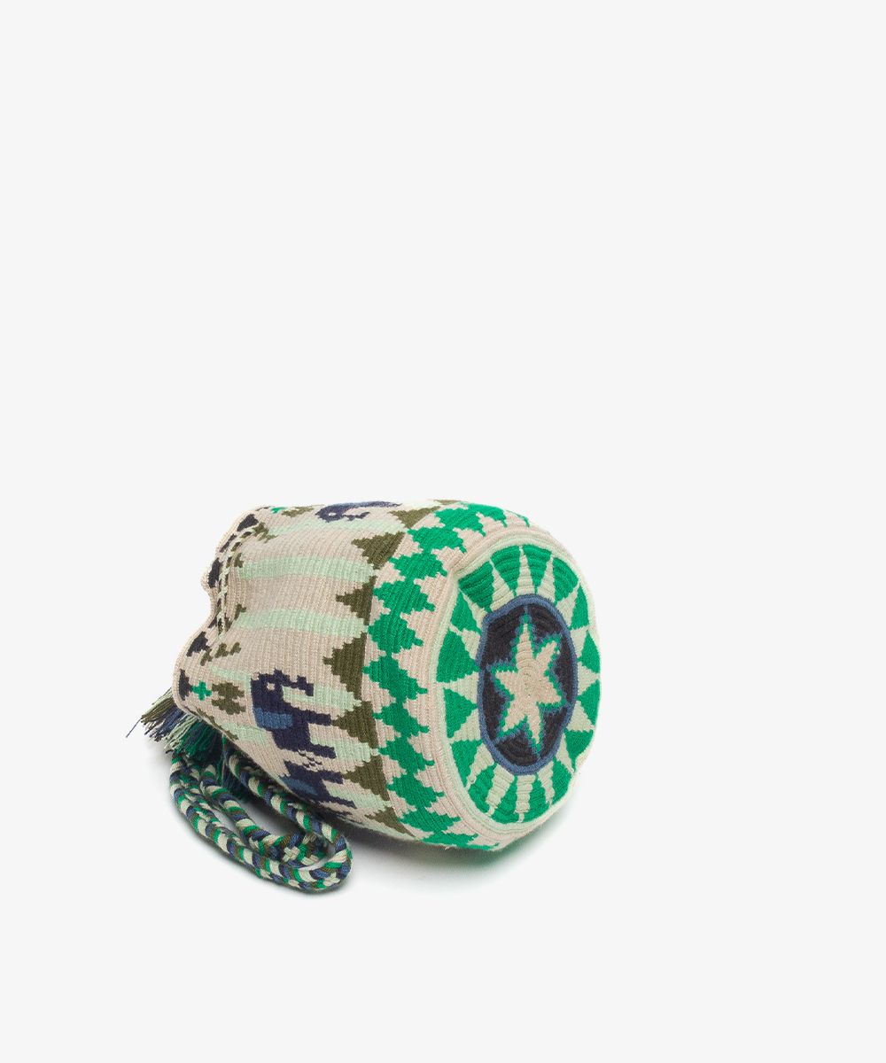 GUANABANA'S design team brings this exclusive day-to-day bag in Madrid as a smaller version of our traditional hand-crocheted Colombian Wayuu mochila. Its fashionable patterns, colors, geometrical shapes, and log-braided Handle make this bag a functional product you can wear to match your adventures. Check its bottom and indulge yourself with different decorations in each bag. The bag closes with colorful pompoms and our distinctive bronze tag with GUANABANA'S leitmotiv: BE POSITIVE.