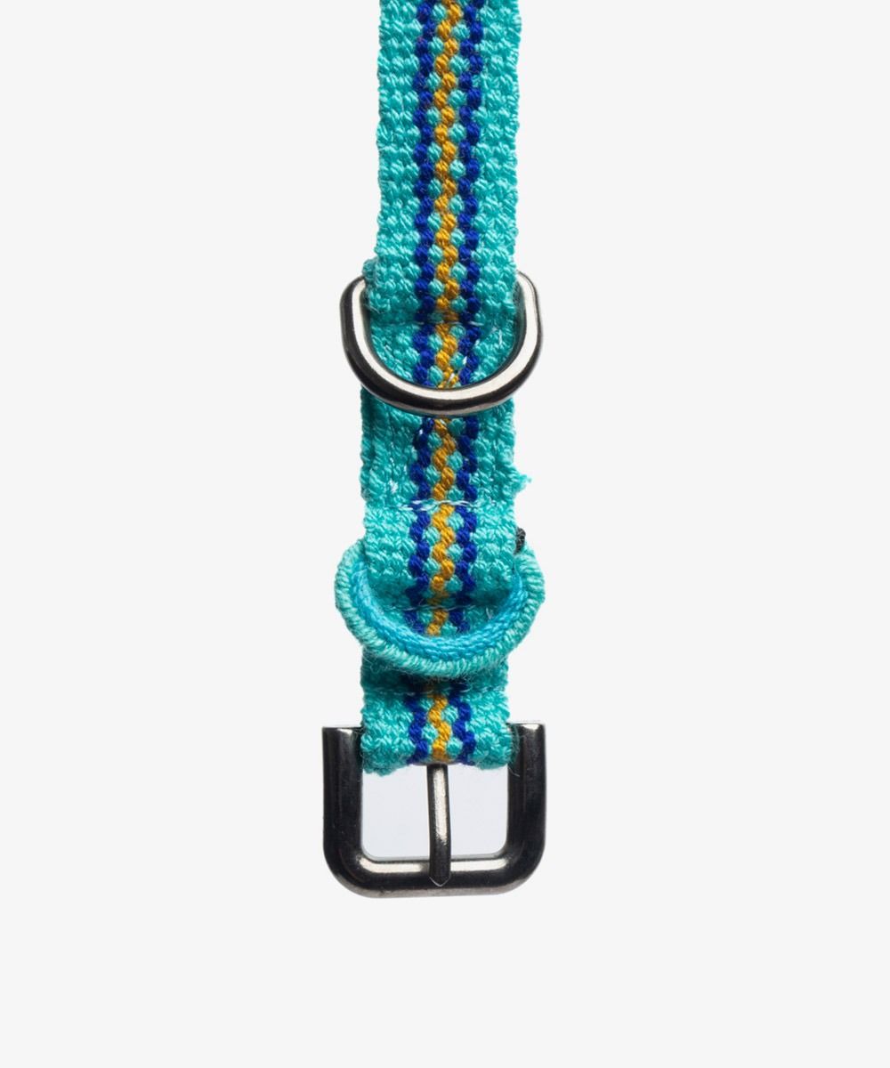 Guanábana offers a collection of meticulously handmade collars for pets. Each collar is crafted using traditional techniques on a hand loom for the ribbon, with all other essential details completed in our atelier to ensure safety during walks. Furthermore, they are machine washable.