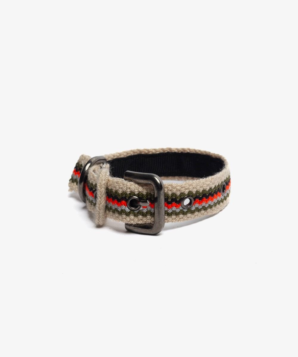 Guanábana offers a collection of meticulously handmade collars for pets. Each collar is crafted using traditional techniques on a hand loom for the ribbon, with all other essential details completed in our atelier to ensure safety during walks. Furthermore, they are machine washable.