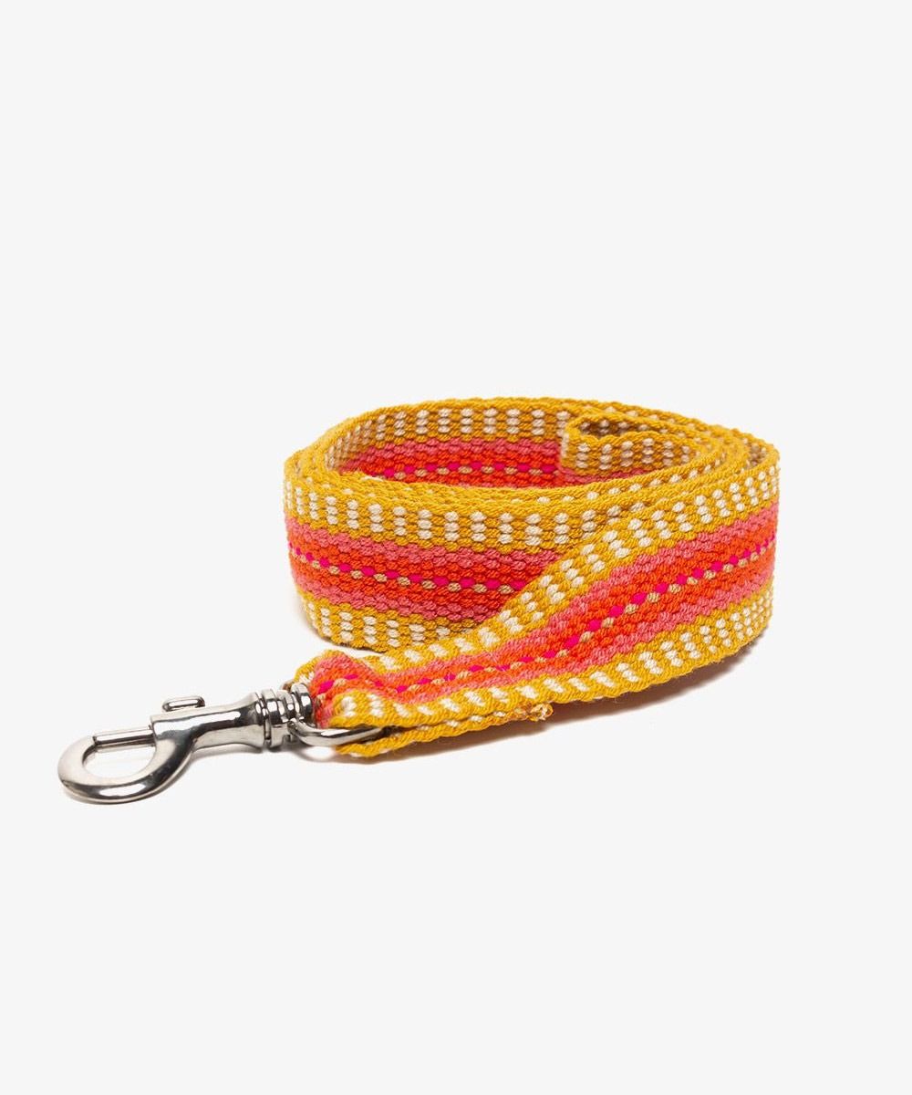 Guanábana provides a curated selection of handmade leashes for pets. Each leash is meticulously crafted using a traditional hand loom technique for the strap, with all finishing details, including the handle and Zamac carabiner, completed in our atelier. Additionally, they are machine washable.