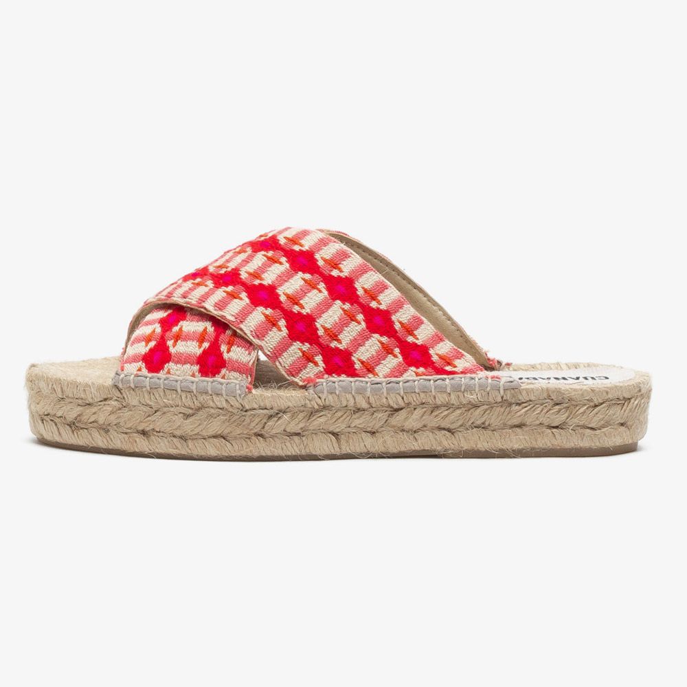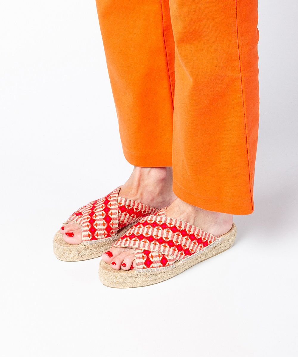 G17Z-10-1908 - ESPADRILLE CROSSED WIDE BAND- SALMON & RED