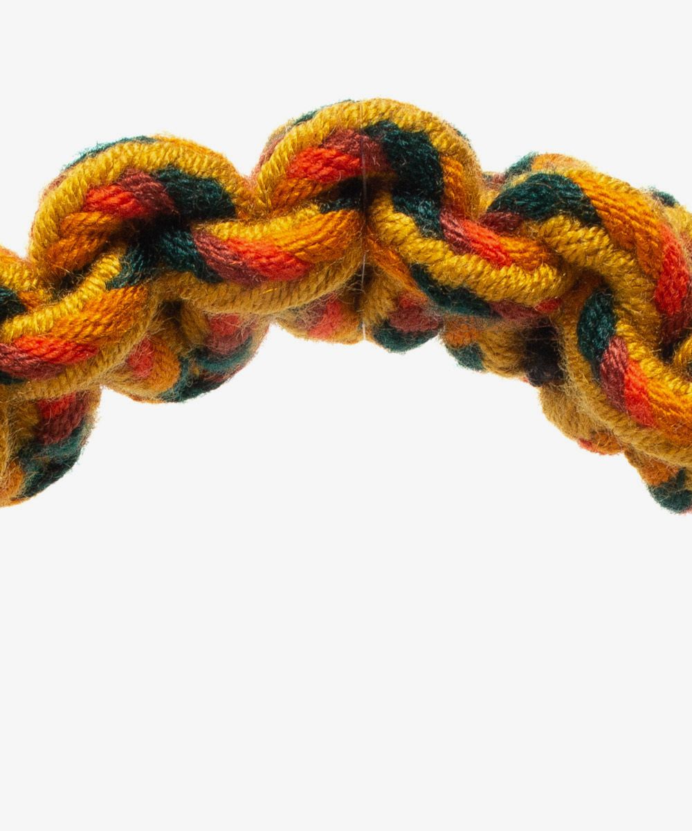 - Height: 17cm - Handles Lenght: 12cm - Opening Diameter: 16cm - Each bag is unique and entirely handmade, so there may be slight variations in shape or size. Ma-chine washable in cold water. Not machine washable, wash with a damp cloth. Basket: 100 natural fiber Linen: 70% cotton/30 % polyesterpolyester Handles: 100 % acrylic