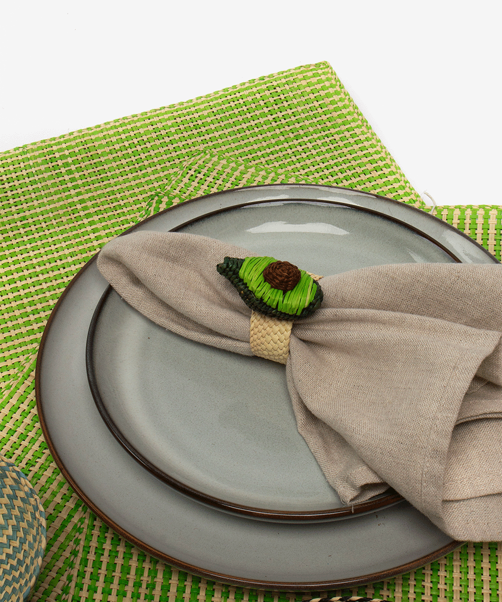 2. Straw placemat 38 cm * 29 cm set/6 - GREEN & BEIGE
