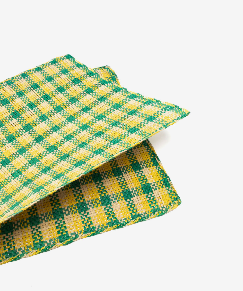 10. Straw placemat SET OF 6 - BICOLOR LIME GREEN & WHITE