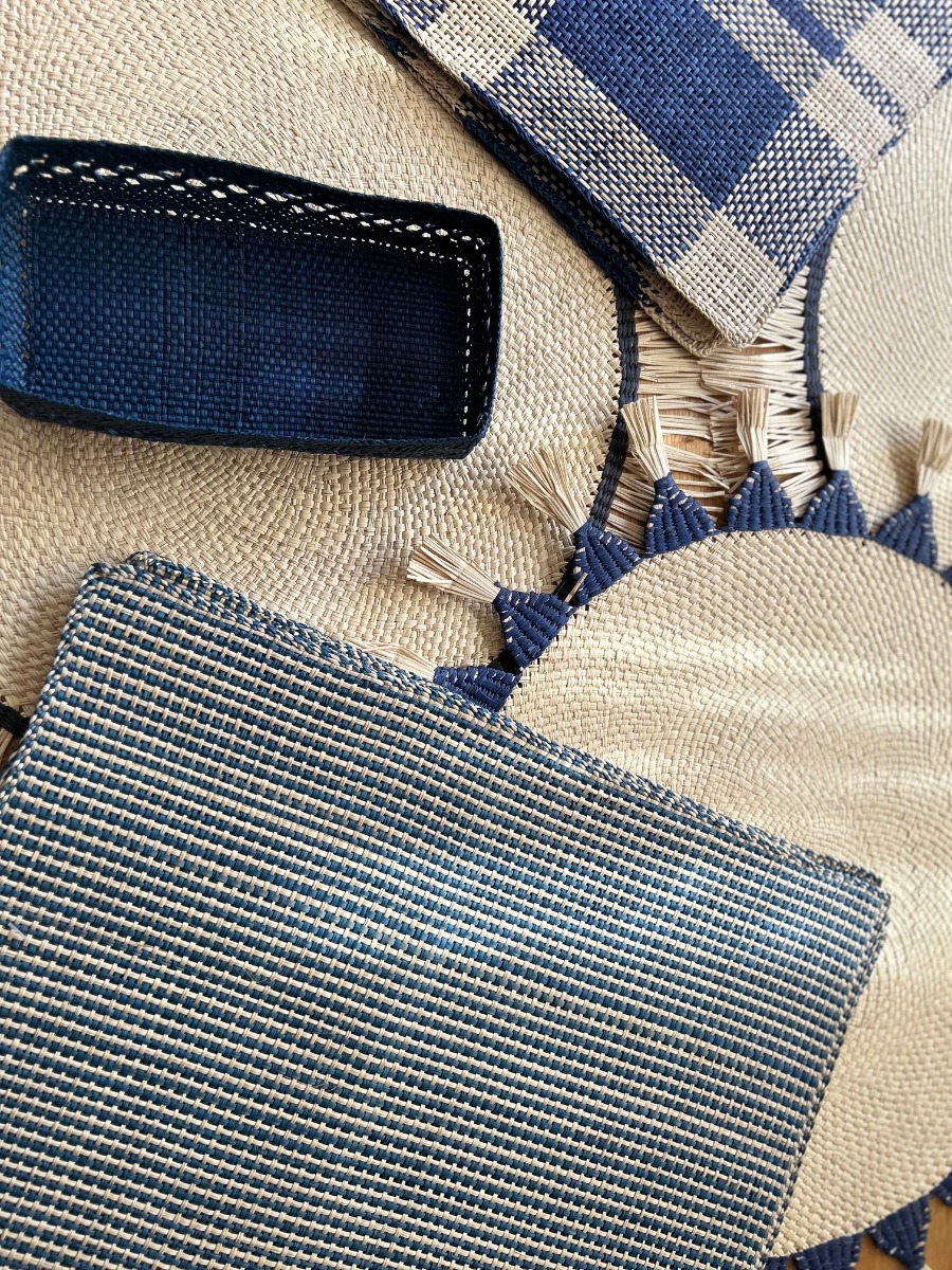 36. Straw placemat SET OF 6 - BICOLOR NAVY & WHITE