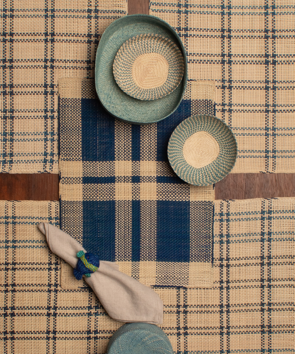 18. Straw placemat SET OF 6 - MUSTARD & BLUE