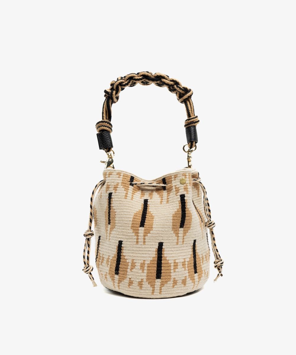 Mitra is the Hindu god of friendship, and this is one of GUANABANA'S best pals because friendship and mutual trust with Wayuu artisans in Colombia bring this bag to life. This version of the classic Wayuu bag closes with a practical cord you can knot or enlarge, suiting your needs. Take stock of its colors and patterns. MITRA carries our distinctive bronze tag with GUANABANA'S leitmotiv: BE POSITIVE.