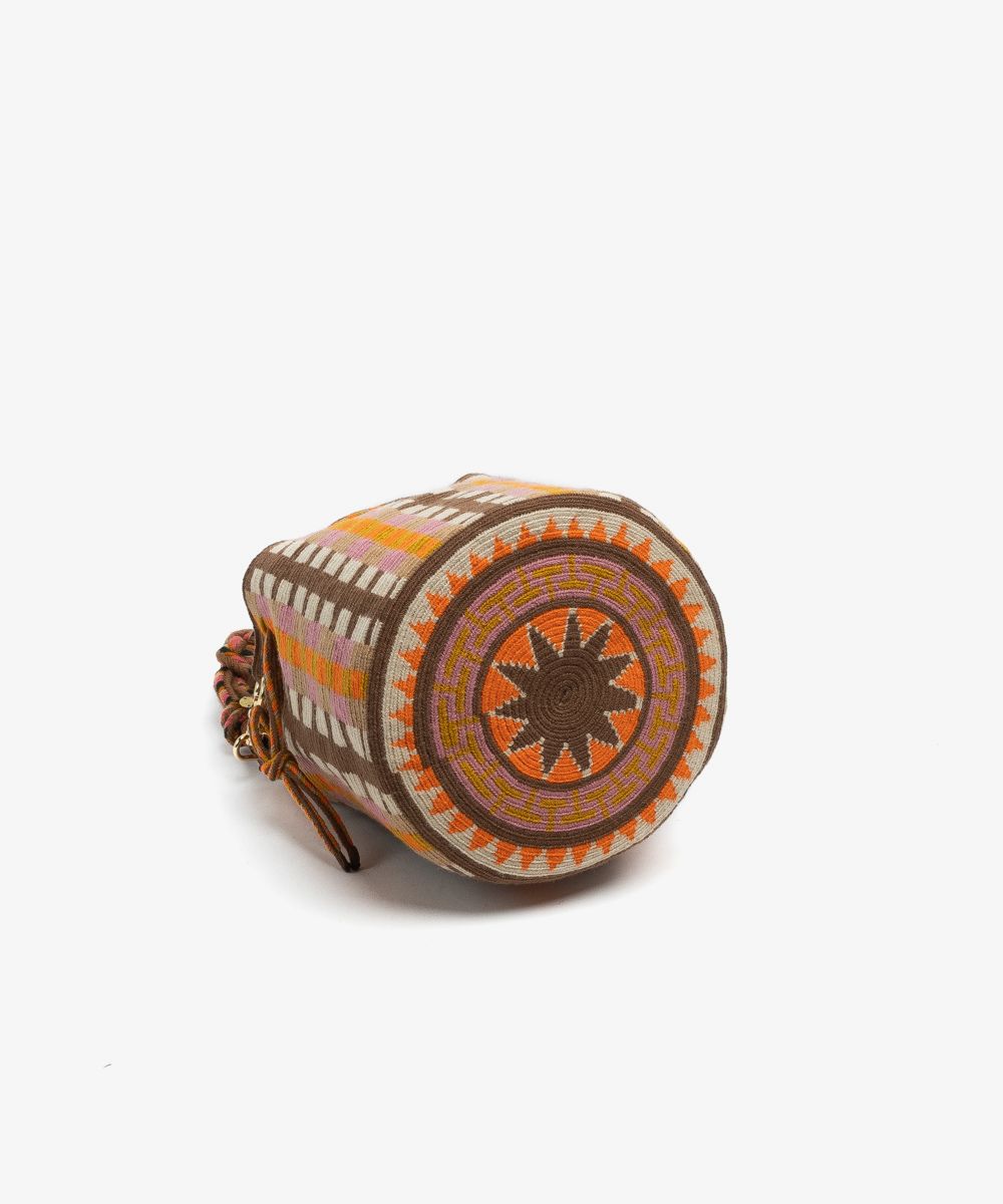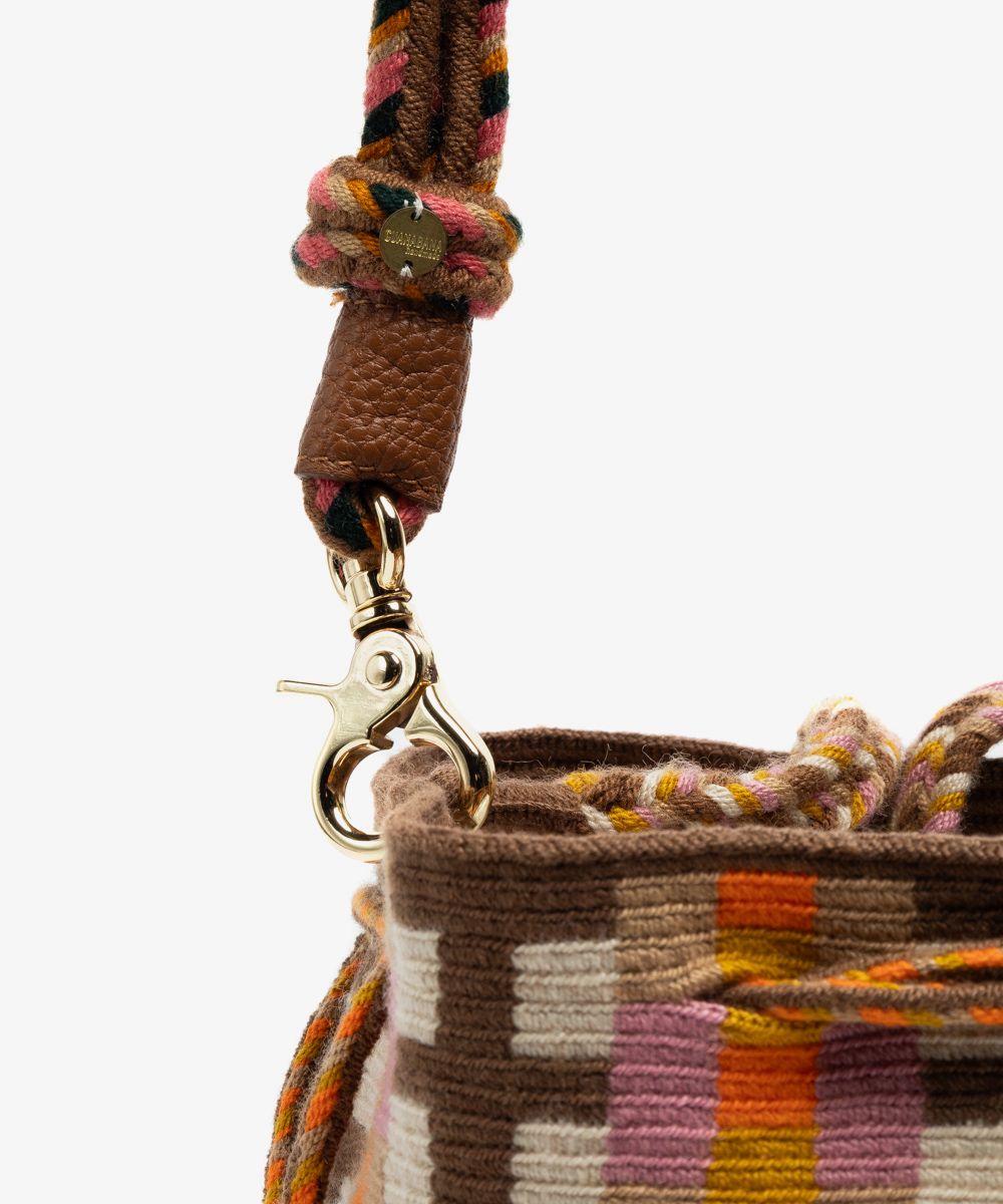 Mitra is the Hindu god of friendship, and this is one of GUANABANA'S best pals because friendship and mutual trust with Wayuu artisans in Colombia bring this bag to life. This version of the classic Wayuu bag closes with a practical cord you can knot or enlarge, suiting your needs. Take stock of its colors and patterns. MITRA carries our distinctive bronze tag with GUANABANA'S leitmotiv: BE POSITIVE.