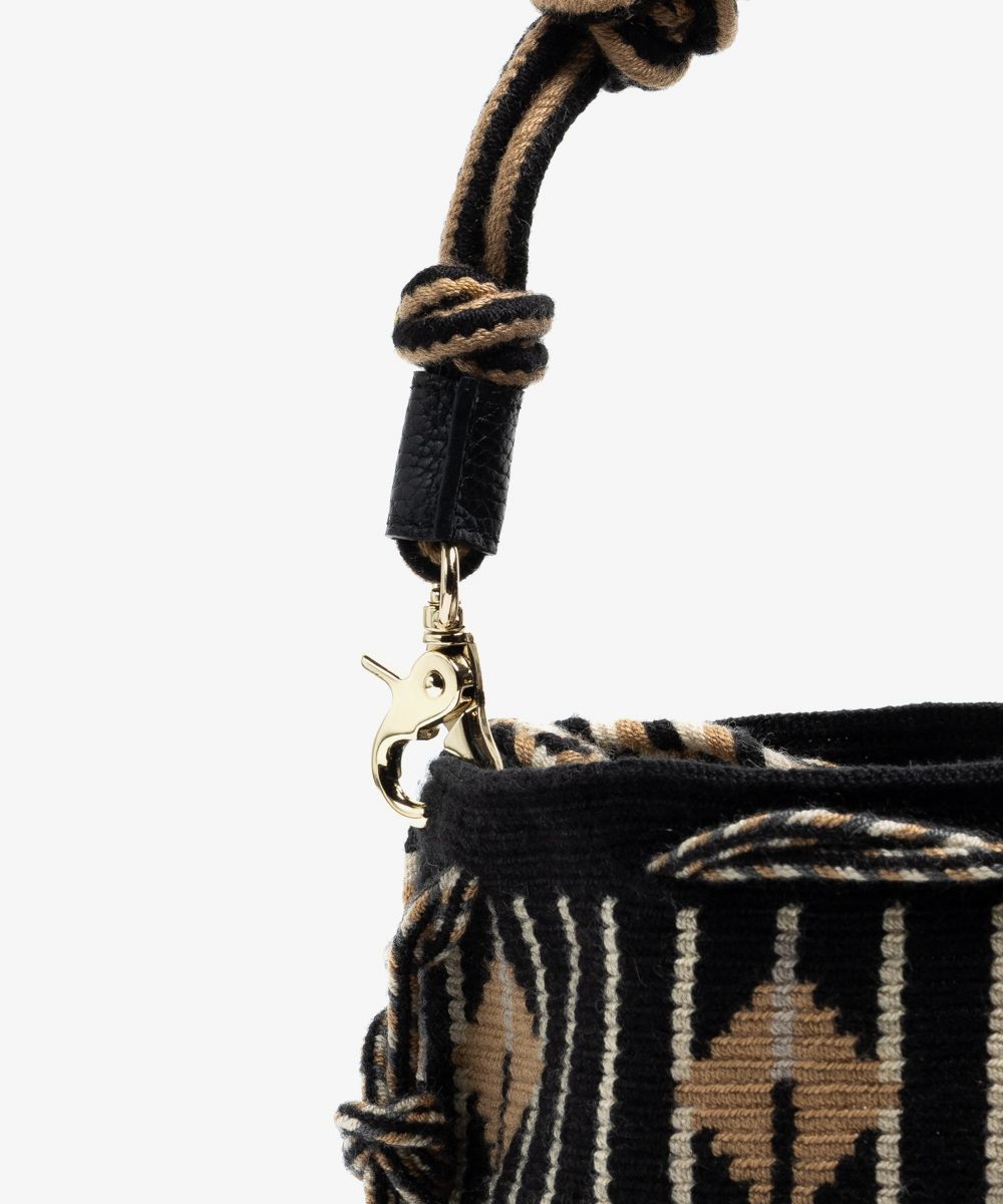Mitra is the Hindu god of friendship, and this is one of GUANABANA'S best pals because friendship and mutual trust with Wayuu artisans in Colombia bring this bag to life. This version of the classic Wayuu bag closes with a practical cord you can knot or enlarge, suiting your needs. Take stock of its colors and patterns. MITRA carries our distinctive bronze tag with GUANABANA'S leitmotiv: BE POSITIVE.