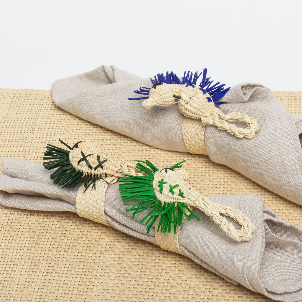 Transform your tableware with our exquisite napkin rings made from iraca, a natural fiber sourced from palm trees in South America. Handcrafted by skilled artisans, each napkin ring is intricately woven to create a unique and elegant design. Iraca's natural texture adds a touch of rustic charm to your table setting, while its durability ensures these napkin rings will last for years to come. Whether you're hosting a dinner party or enjoying a meal with family, these napkin rings will elevate your table décor to the next level. Our advice: Choose from a variety of colors and shapes to complement your table setting and complete the look with our matching iraca placemats and coasters.