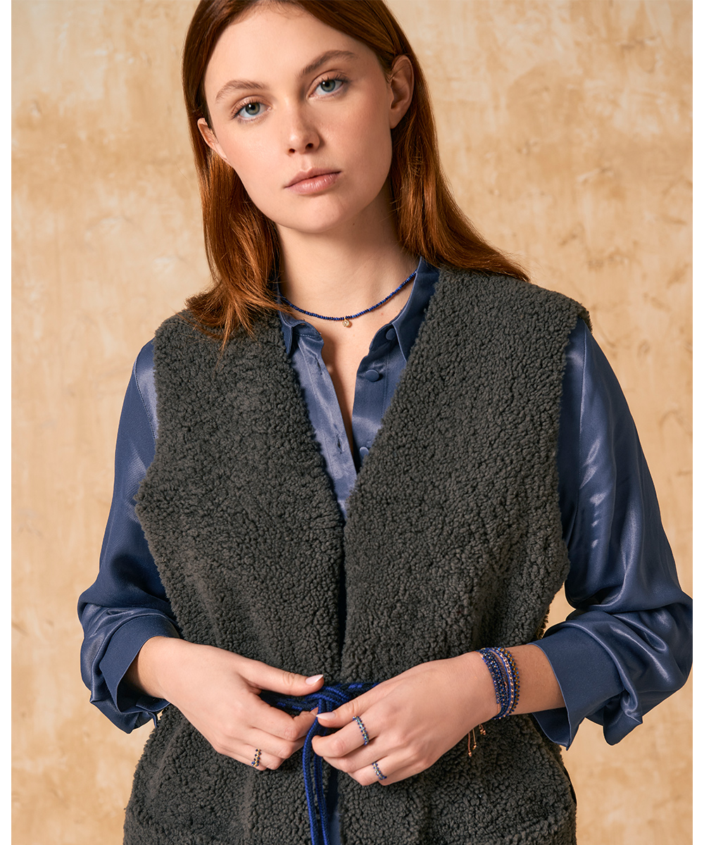 16. HAYES LAMBSKIN VEST CURLY GREY