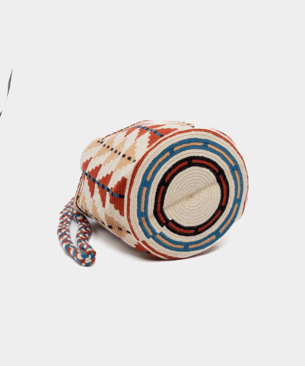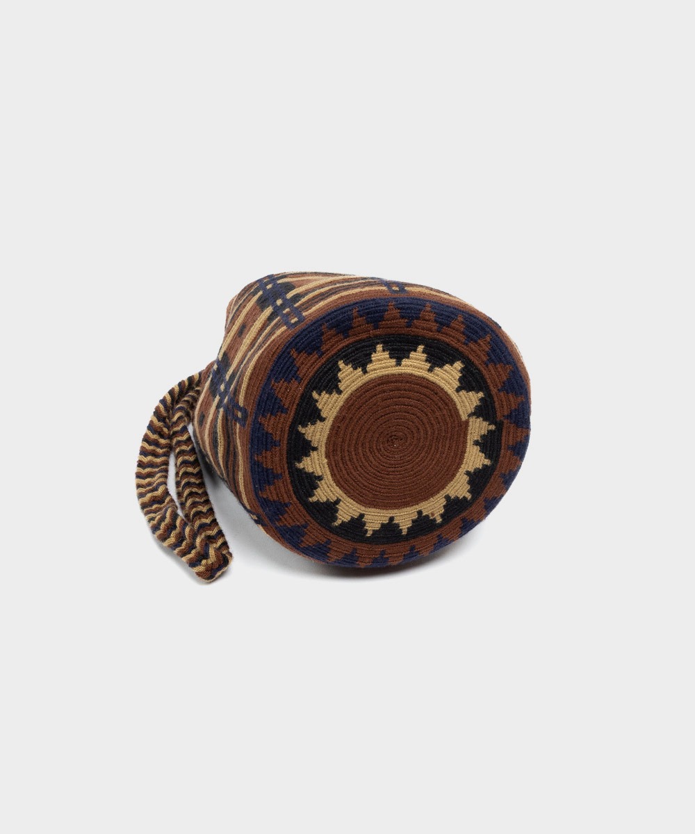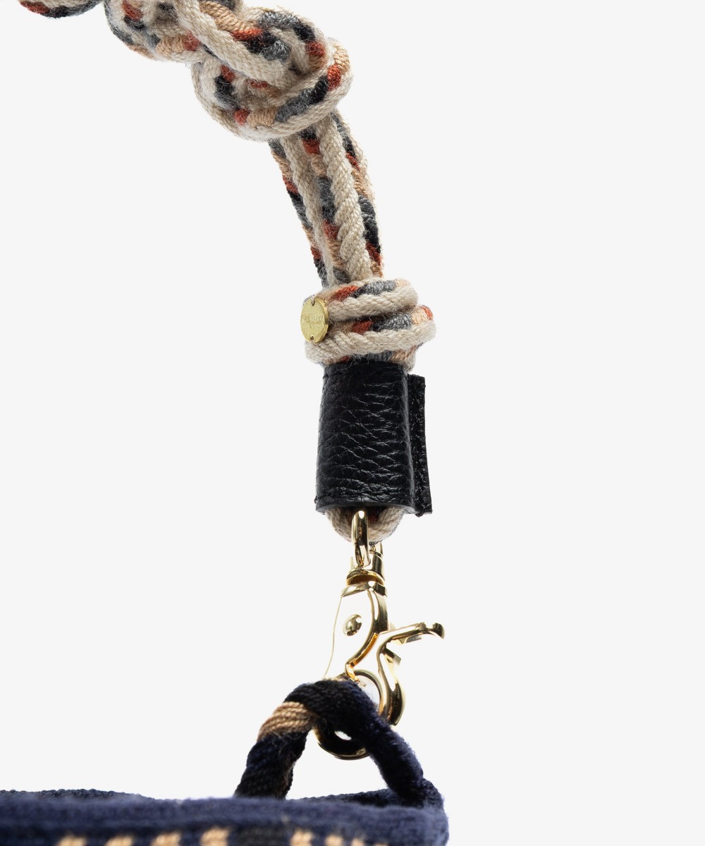 43. Crossbody Bag M with short macrame handle MARIGOLD - NAVY & TOAST
