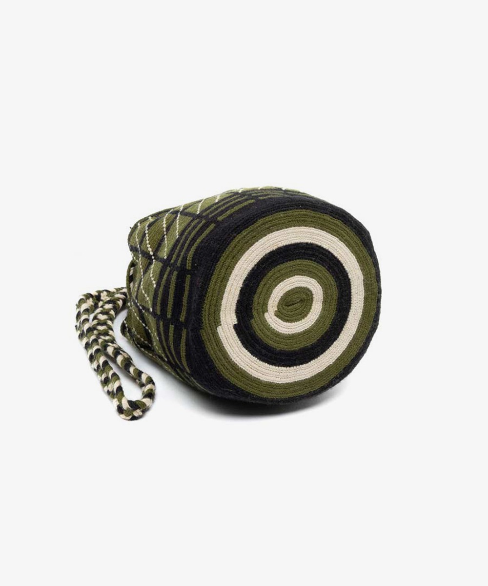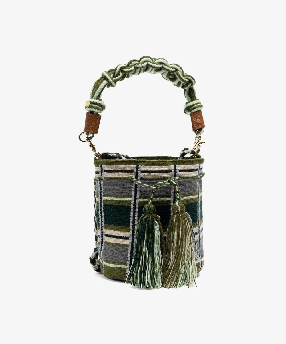 40. Crossbody Bag M with short macrame handle ARUM - DARK GREEN & GREY