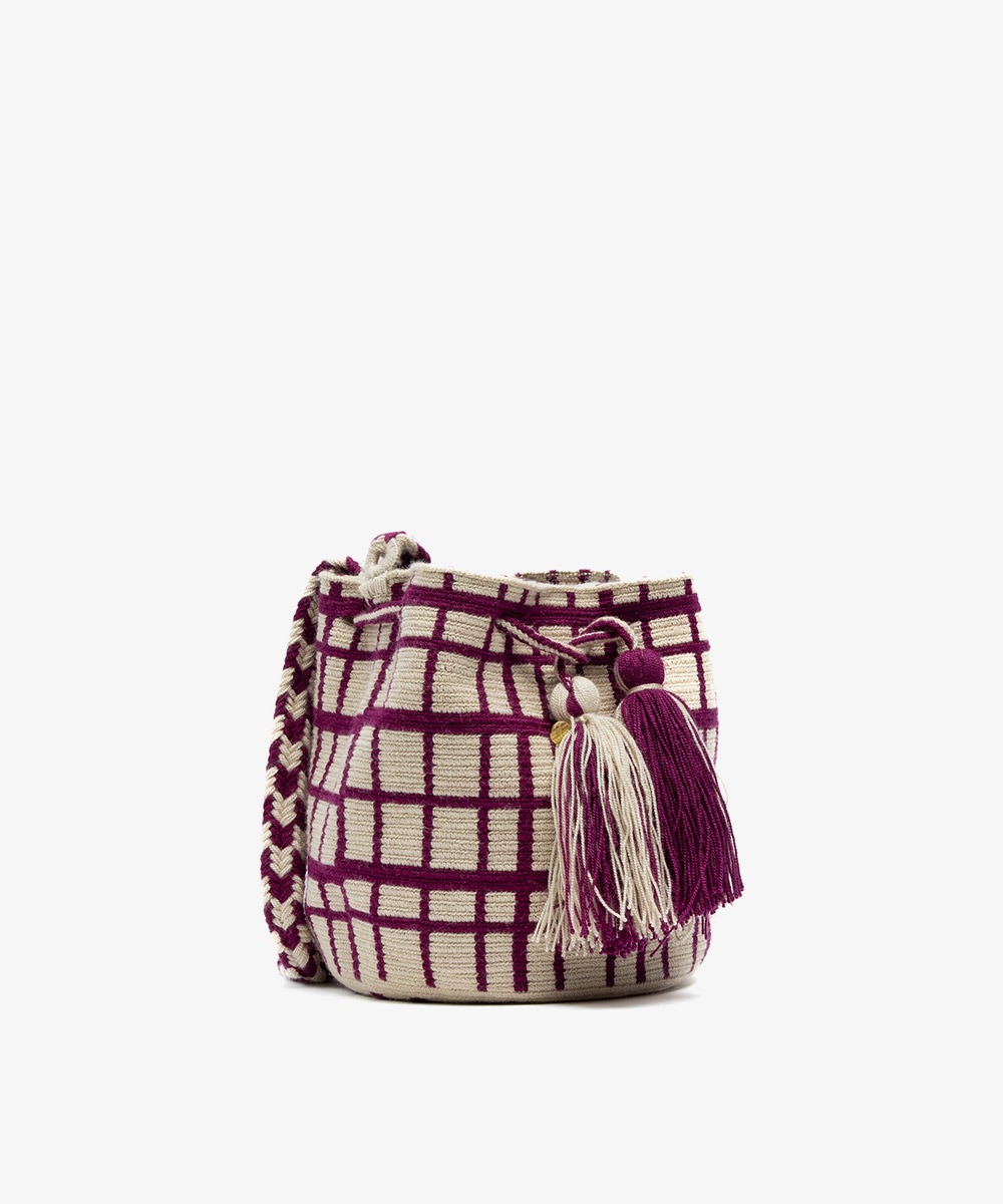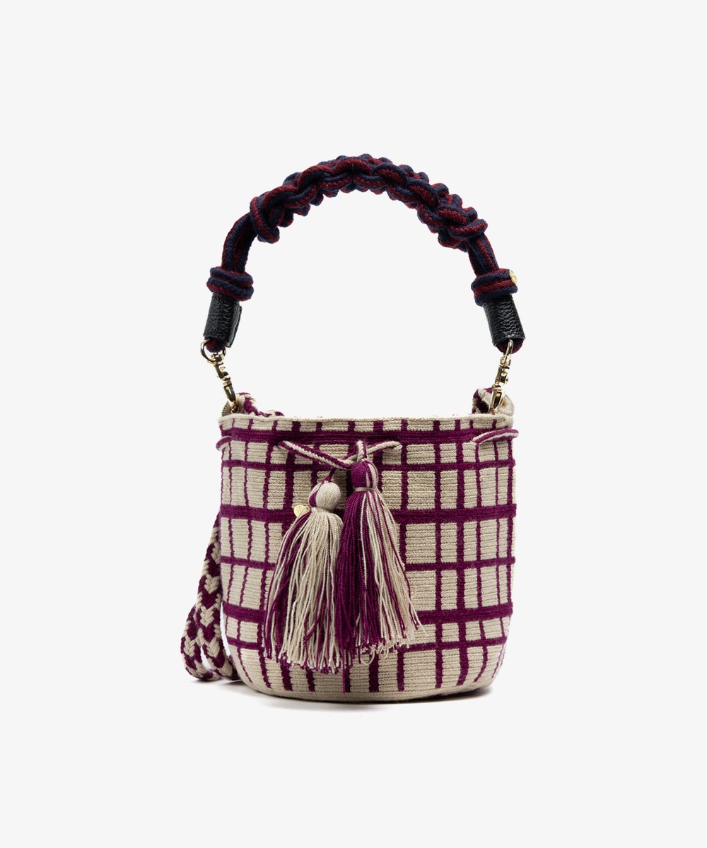 34. Crossbody Bag M with short macrame handle AMARANTH - BLACK & BROWN