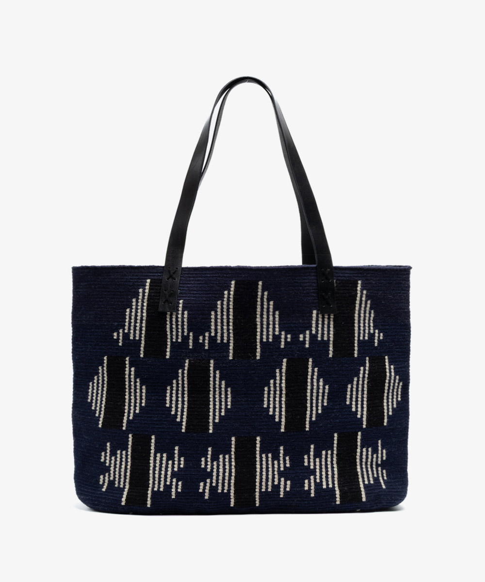 42. Shopping Bag L WITH LEATHER STRAP NAVY & TOAST