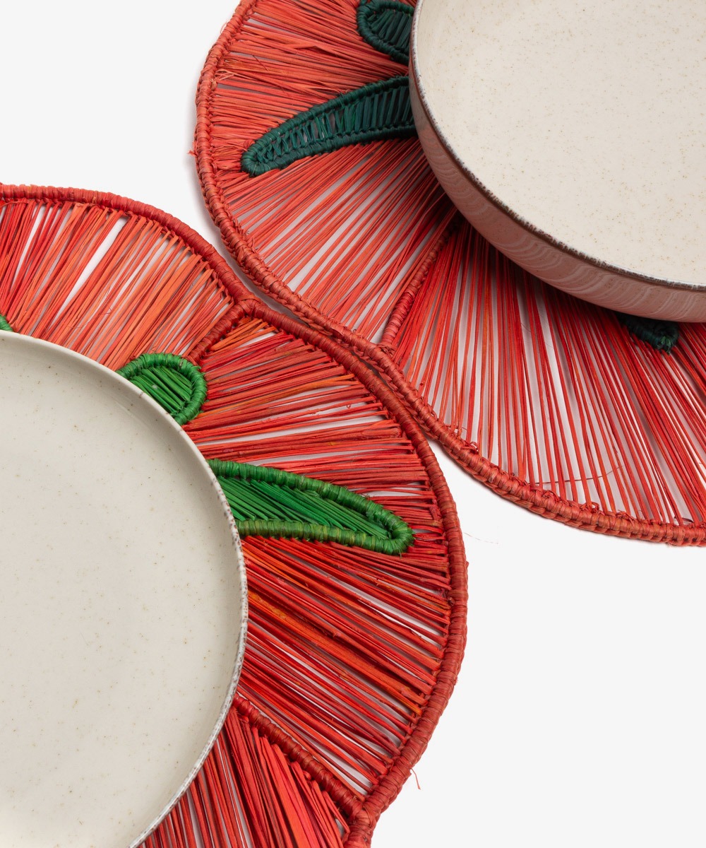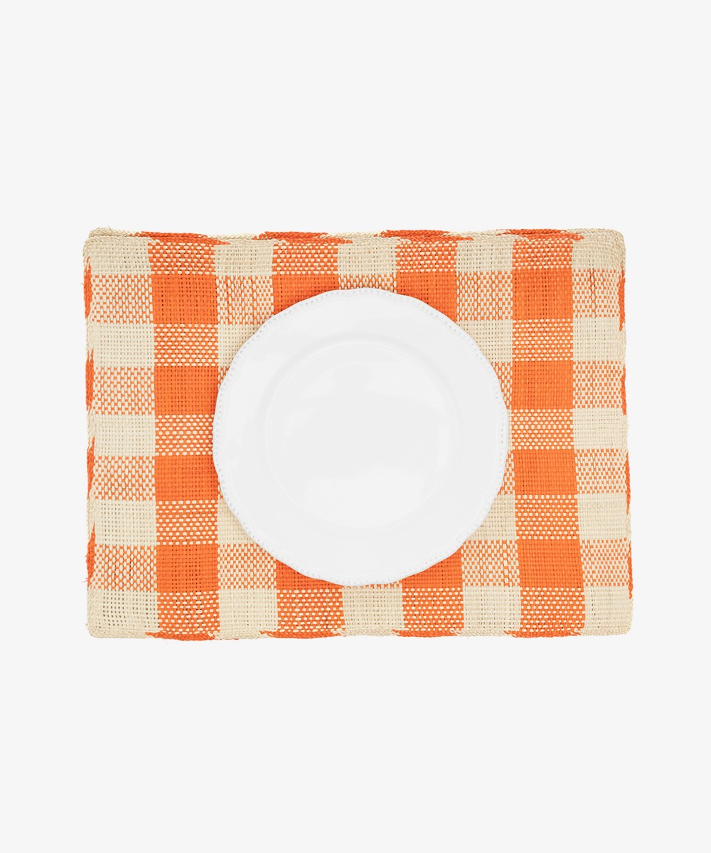 46. Straw placemat 38 cm * 29 cm set/6 - MITAD FUCSIA Y NARANJA