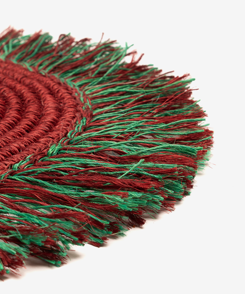 44. ROUND PLACEMAT FIQUE WITH FRINGES BORDEAUX & TOAST