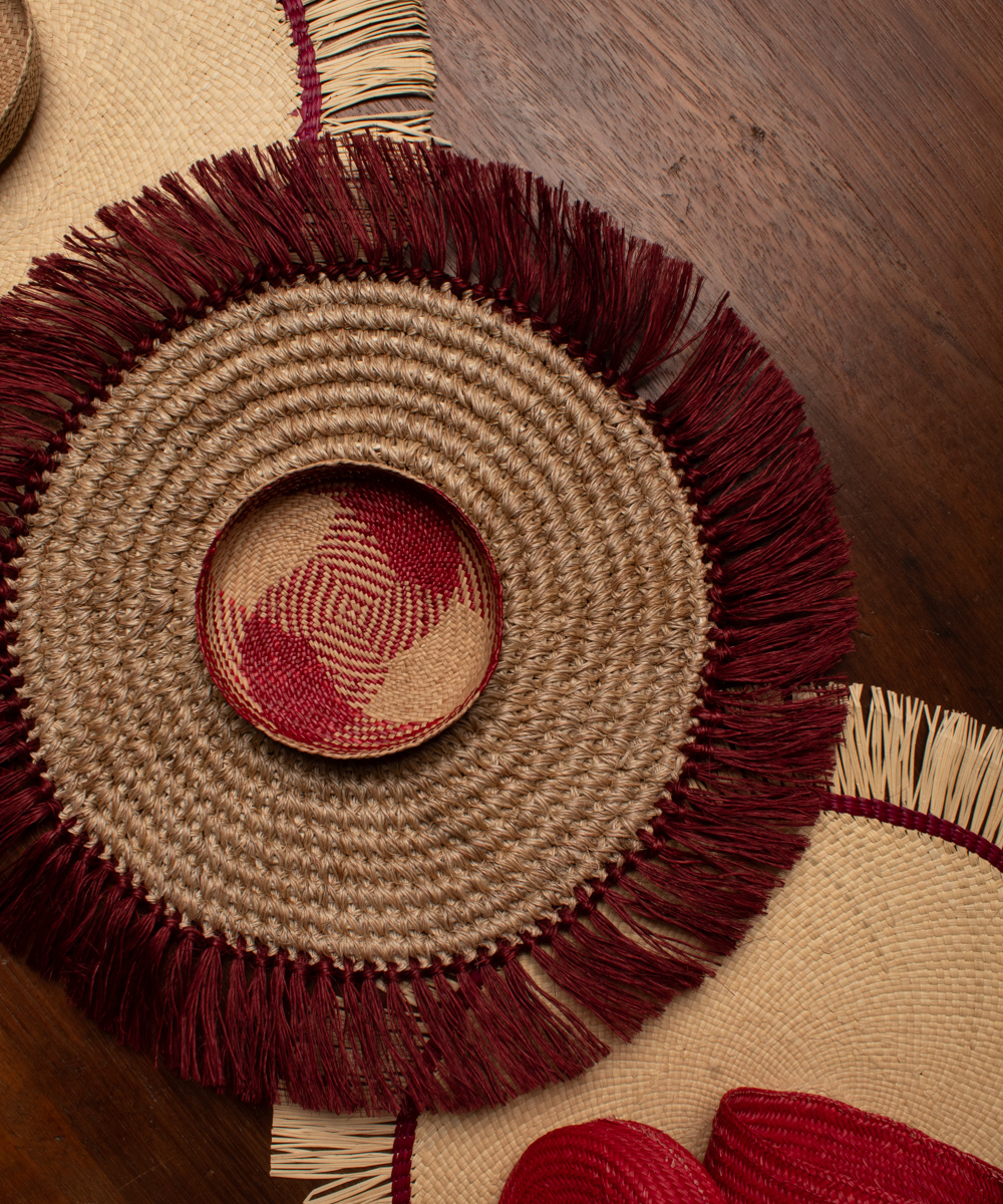 47. ROUND PLACEMAT FIQUE WITH FRINGES BORDEAUX & TOAST