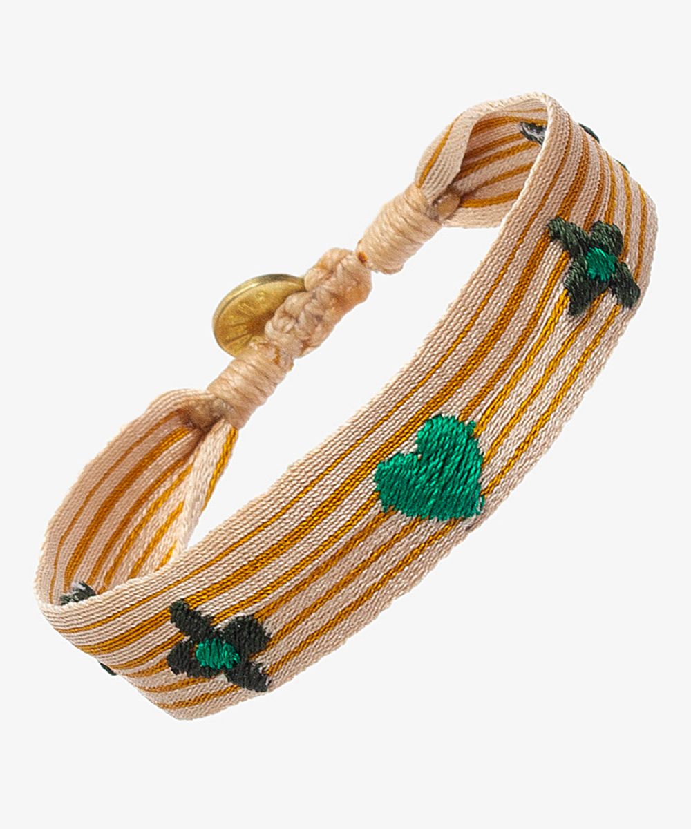 ARGANTINAS are a unique and special accessory, one of the identity marks of Guanábana. A garment that combines tradition and new trends, exclusively designed in Madrid and handcrafted on an Egyptian handloom. The opening adjusts to fit your wrist and is adorned with a medallion on which is inscribed our mantra: Be positive!